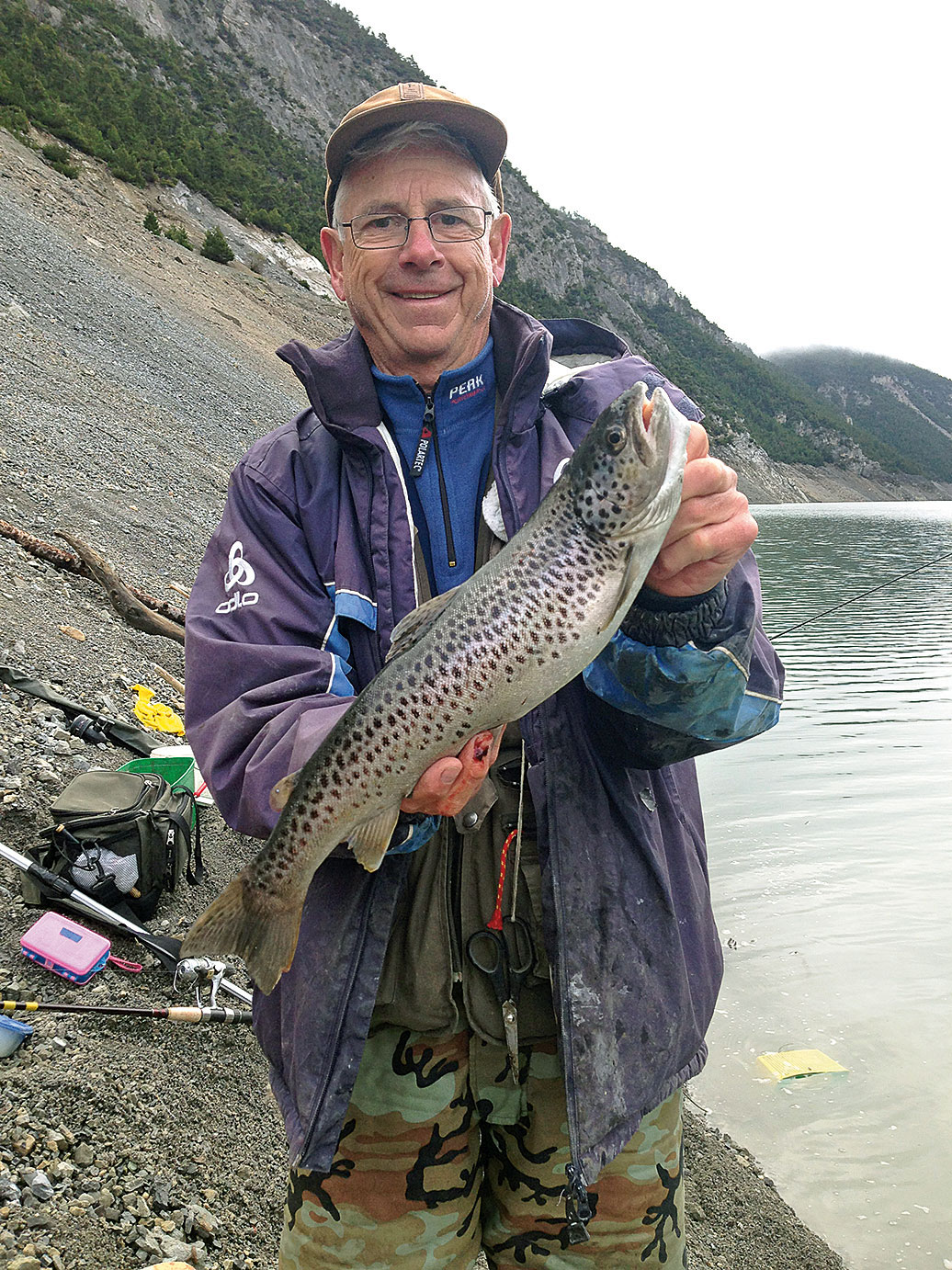 Der Stausee Marmorera liegt am Fuss des Julierpasses und ist fischereilich interessant, da er eine grosse Vielfalt an Salmoniden aufweist. Es tummeln sich See-, Bach-, Regenbogenforellen, Seesaiblinge und Namaycush im See. Der Wasserspiegel wird über den Winter stark gesenkt und am 1. Mai, wenn Eröffnung ist, kann es eine sehr schlammige Angelegenheit werden. Der Haupteinlauf, wo der Bach Julia einmündet, ist ein richtiger Fischermagnet. Im Marmorerasee hat es wirklich kapitale Fische! Ich erinnere mich noch gut, als vor acht bis zehn Jahren eine sehr grosse, standorttreue Bachforelle im Bereich des Damms ihre Runden zog. Man munkelte, dass sie gut einen Meter lang sei. Diese Bachforelle konnte man über vier Jahre hin beobachten, und manch ein Petrijünger versuchte sein Glück auf diesen Brocken. Es gelang auch dem einen oder anderen, den Fisch an den Haken zu bekommen, jedoch schaffte es keiner, das rot getupfte Monster zu bändigen. Ich bin überzeugt, dass es noch mehr solche Fische im See gibt. Es werden auch immer wieder Namaycush von 70 cm oder mehr überlistet.