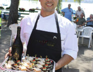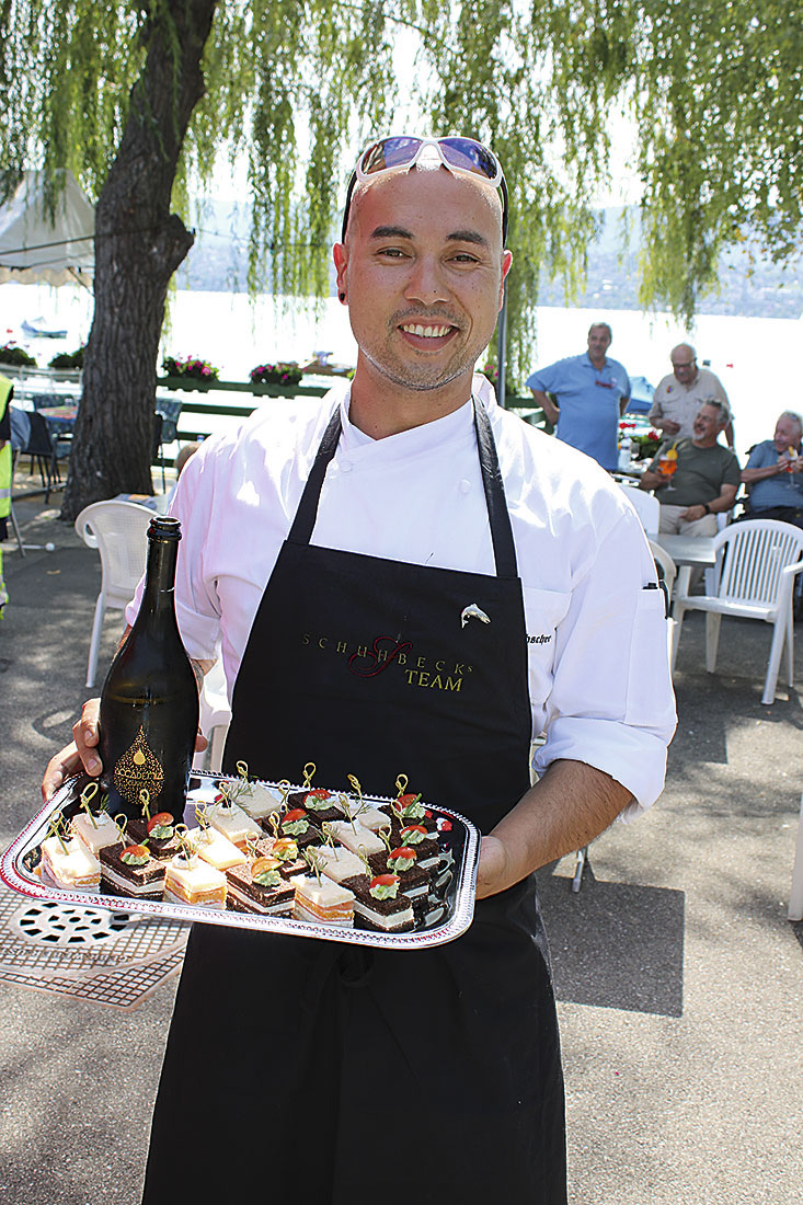 Marc André Laubscher, selber begeisterter Fliegenfischer und Leiter der Hallenstadion Gastronomie in Zürich, zauberte während alle auf dem Wasser waren nicht nur Kanapees vom Feinsten auf die Tablette, sondern grillierte Fleisch und sorgte für ein üppiges Salatbuffet. Kurzum: Neben dem fischereilich nur mässig erfolgreichen Tag wird umso mehr fürs leibliche Wohl gesorgt. Die zurückkehrenden Fischerinnen und Fischer freuts.