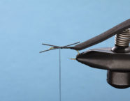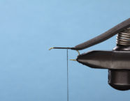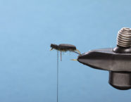 Ein wichtiger Bestandteil unseres Käfers ist der Foam-Rücken. Dieser gibt der Fliege das typische Aussehen und lässt sie ausgezeichnet schwimmen. Mit dem Feuerzeug erhitzen wir den Foam, um die Kanten zu glätten und ein realistischeres Aussehen zu erreichen. Das Ice Dub in der Farbe Peacock gibt dieser Fliege den nötigen Glanz. Die Gummibeine sind ein wahrer Fischmagnet, sie zappeln und bewegen sich verführerisch. Dank des orangen Foam-Zylinders sieht man die Foamy auch unter schwierigen Lichtverhältnissen bestens.