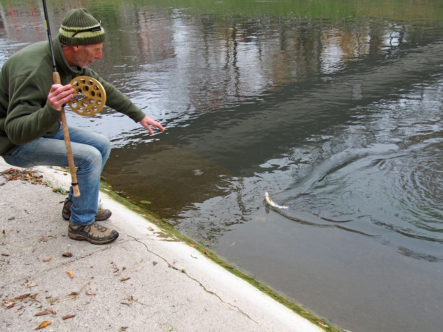 «Learning by doing» war das Motto des FVZ1883 beim Praxisseminar Äschenfischen. Gut ein Dutzend interessierte Fischer trafen sich am letzten Oktober-Samstag im Limmatrevier 364 beim Kraftwerkskanal in Dietikon. Unter Anleitung der beiden Instruktoren Felix Buck und Jean Rubin wurde nach einer kurzen theoretischen Einleitung das Äschenfischen in der Praxis demonstriert. Bereits nach kurzer Zeit konnte von einem der beiden Könner die erste kleine Äsche gehakt und schonend released werden. Nach dieser Demonstration galt es für die Teilnehmer nun selber das neue Wissen am Wasser umzusetzen. So konnten selbst langjährige Fischer von den Gewässer und Technik Tipps der Seminarleiter profitieren und der Erfolg blieb deshalb auch den «Schülern» nicht versagt.