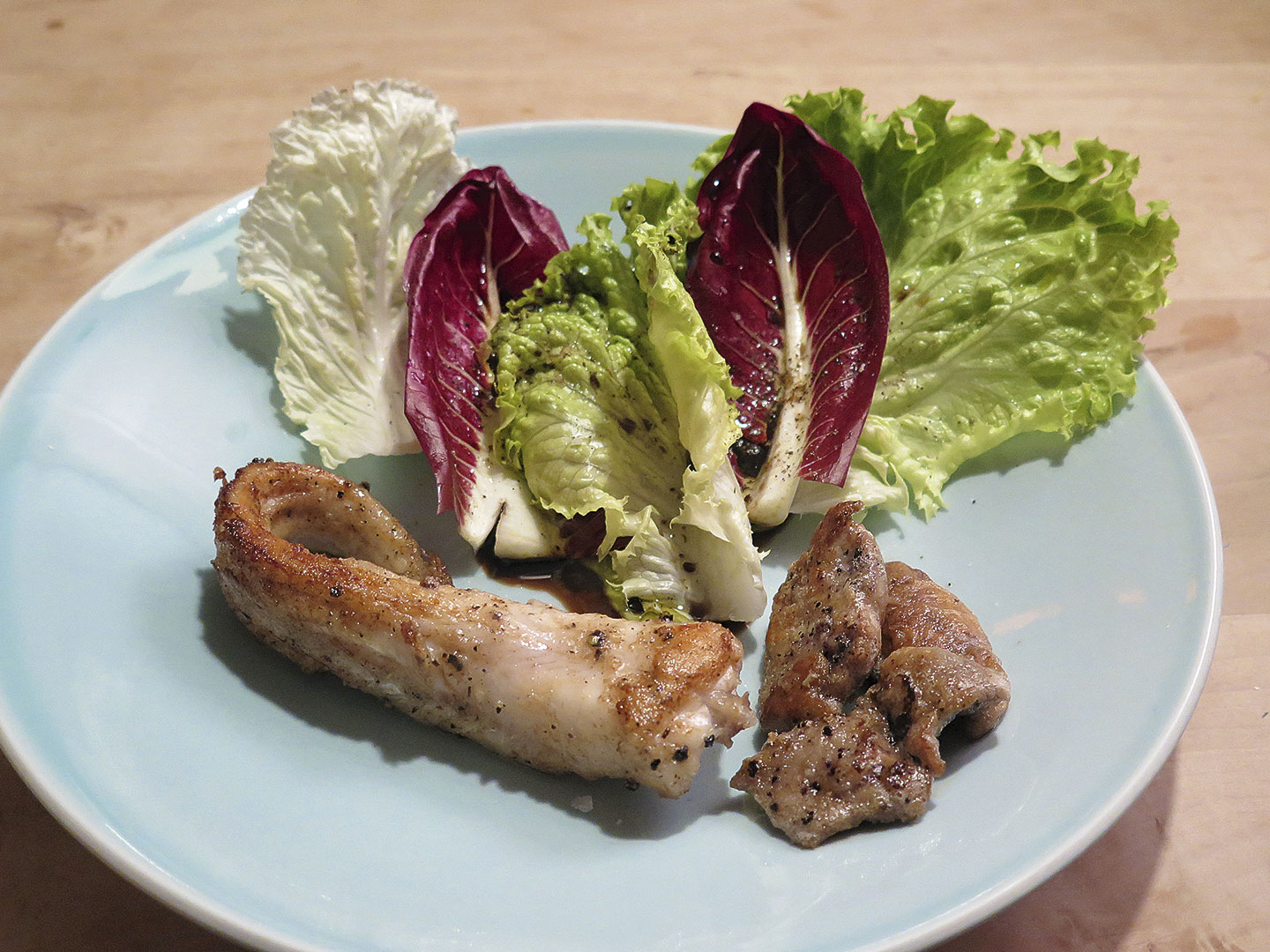 Die Gallenblase sorgfältig entfernen. Tritt trotzdem ein wenig Gallensaft aus, ist dies nicht weiter tragisch, sofern man die Leber unter fliessendem Wasser abspült. So gereinigt hat man ein Ausgangsprodukt vor sich, das es in Punkto Qualität locker mit der berühmten «Foie Gras», der französischen Gänse- oder Entenleber, aufnehmen kann.