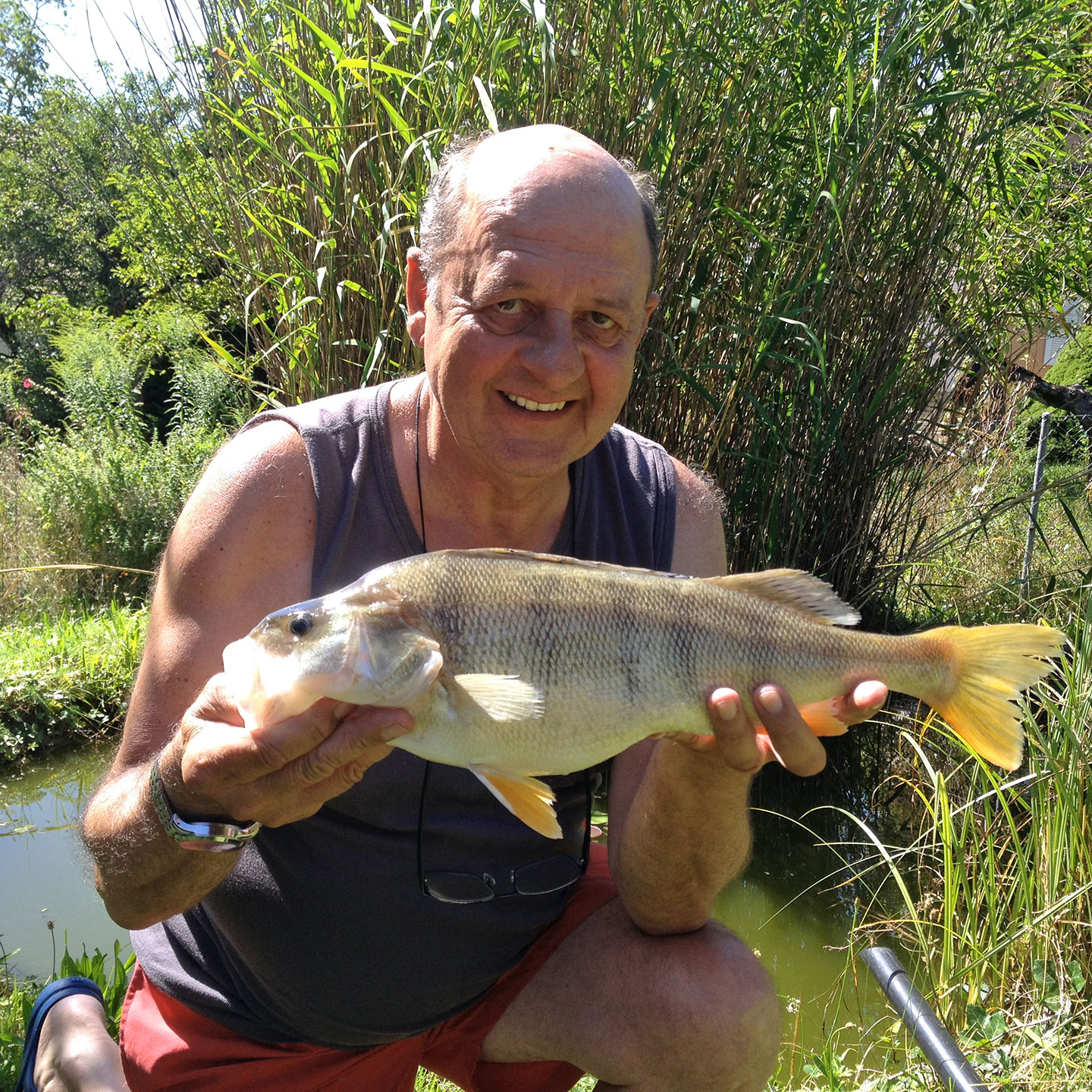 Zu Besuch am Genfersee konnte Heinz Kessler aus Zollikerberg diesen tollen Egli fangen. Er biss am Nachmittag des 3. August bei Sonnenschein und Hitze vor dem Hafen La Tour-de-Peilz auf einen Köderfisch an der Zapfenmontage. Verwendetes Gerät: Sportex Turbo Swing-Rute, Shimano Seido-Rolle, Berkley 0,16er-Geflochtene, Fighter 0,20er-Monofil, Schwale.