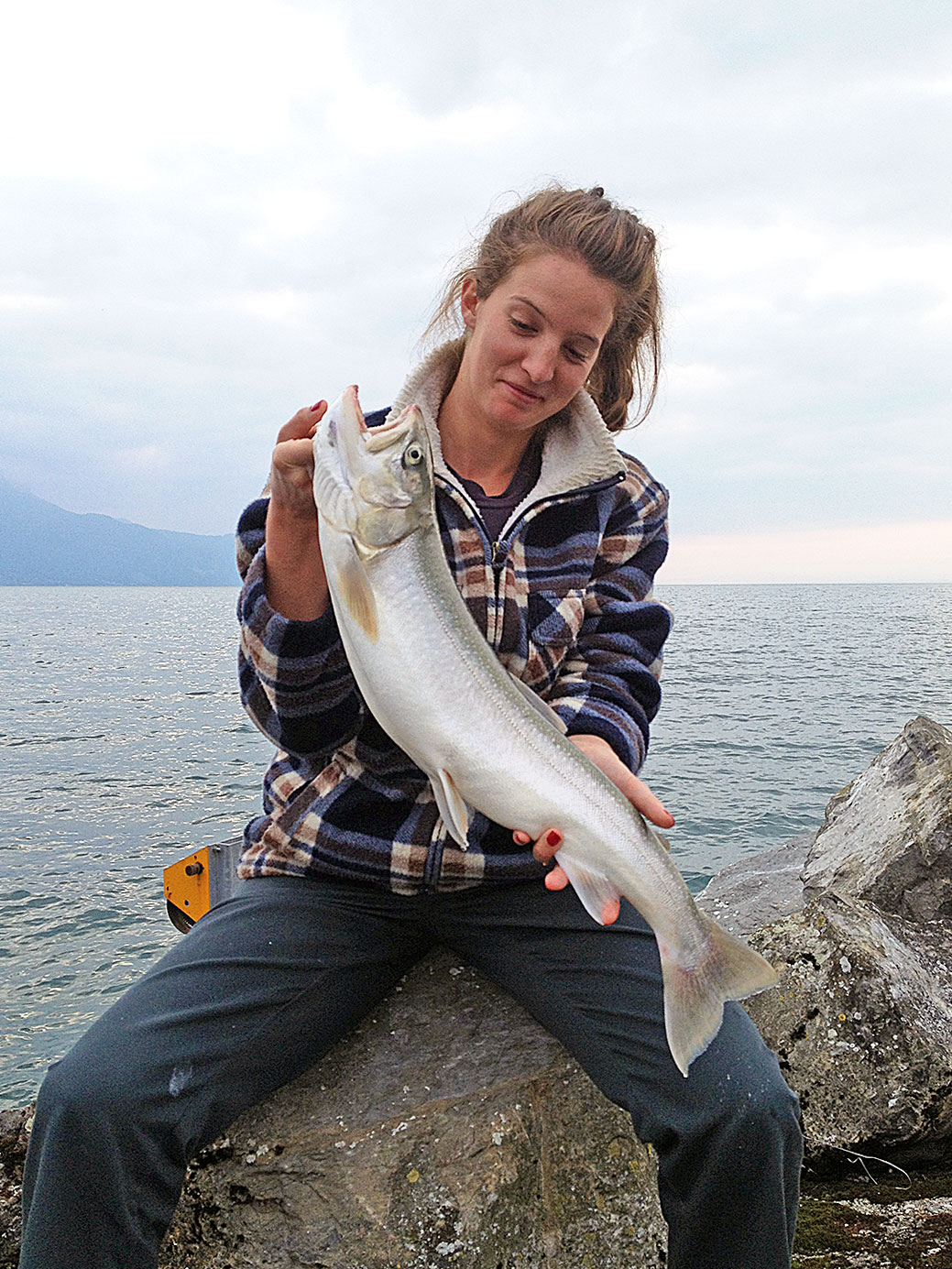 Am leicht bewölkten Samstag des 26. Septembers schleppte Andreas Kessler zusammen mit seiner Freundin Kate-Elisabeth Granges aus Lausanne vor Montreux. Nach knapp einer Stunde biss dieser schöne Saibling an der Tiefseerolle. Kate-Elisabeth drillte ihn gekonnt hoch und Andreas konnte ihn feumern. Verwendetes Gerät: Stucki-Tiefseerolle, 0,28er-Nylon Fighter, Blechlöffel.