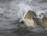 Beim Hechtfischen muss man eigentlich ständig das Tempo wechseln und darf bei der Köderführung nicht mit Reizen geizen. Hechte sind ungemein neugierige Fische und haben eine äusserst niedrige Reizschwelle – vor allem im Frühling, wenn sich das Wasser erwärmt und die Laichzeit hinter ihnen liegt. Erst im Sommer erreicht die Reizschwelle bei den Hechten wieder ihr normales Mass. Zander dagegen sind das ganze Jahr über leicht reizbar. Besonders deutlich wird dies im Vergleich zwischen Zandern und Hechten im Sommer, wenn die Räuber in der Dämmerung im flachen Wasser auf Jagd gehen. Mit Wobblern, die man gleichmässig durchs Wasser zerrt, gibts richtig gute Zanderfänge. Fischer, die den Wobbler zügig anbieten und ihm dabei unerwartet mit kräftigen Schlägen der Rute einen zusätzlichen Schub geben, fangen eher Hechte. Ein derartiges Ausbrechen des Wobblers quittieren die Räuber mit dem Entenschnabel unbarmherzig.