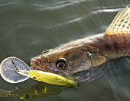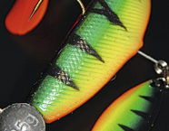 Nebenbei bemerkt: Eine aggressive Köderführung, die auf der Taktik des Überrumpelns basiert – quasi auf das Auslösen des instinktiven Beissreflexes spekuliert –, kann noch verfeinert werden: Nämlich durch die Wahl des richtigen Köders, genauer gesagt durch seine Gestalt, Farbe und natürlich die Druck- bzw. Reizwellen, die von ihm ausgehen. Letzteres hat im Prinzip dann auch etwas mit der Köderführung als solche zu tun. Denn ein rasch gezogener Kunstköder wird von sich aus weitaus grössere Reize erzeugen als ein langsam geführter. Verstärkt wird dieser Effekt, wenn der Köder bereits ein echter Radaubruder ist und die Führung seinen lautstarken Lauf noch verstärkt.