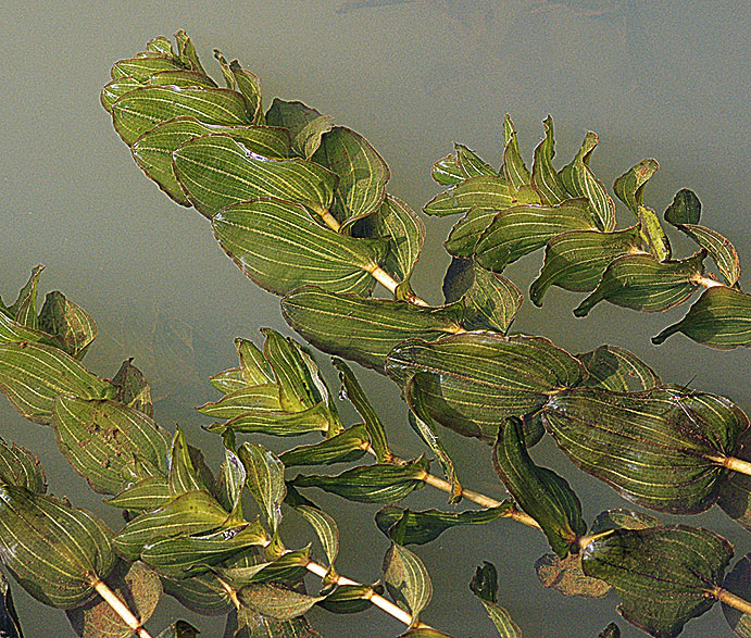 Mein absoluter Favorit in der Familie der Laichkrautgewächse ist Potamogeton crispus, das sogenannte Krause Laichkraut. Es wächst nicht so hoch, steht mit seinen einzelnen Stängeln weiter auseinander und ist ein wahrer Raubfischmagnet.