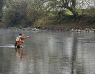Die Äsche lässt sich von der Silhouette eines Fischers viel weniger vergrämen, als von einer auf sie zuschwimmenden Vorfachspitze. Gerade in einem viel befischten Gewässer muss die Fliege unbedingt vor dem Vorfach in das Blickfeld der Äsche gelangen. Wir werfen deshalb schräg oder je nach Umständen direkt abwärts. Der Wurf flussaufwärts ist hier verpönt. Sogar querüber ist nicht zu empfehlen, es sei denn, der Fliegenfischer beherrscht den Bogenwurf. Dass wir die Schnur und das Vorfach sehr locker ablegen müssen, versteht sich beim Abwärtsfischen von selbst. Sehr wichtig ist die Genauigkeit der Präsentation. Eine seitliche Abweichung von wenigen Zentimetern kann schon zu viel sein.