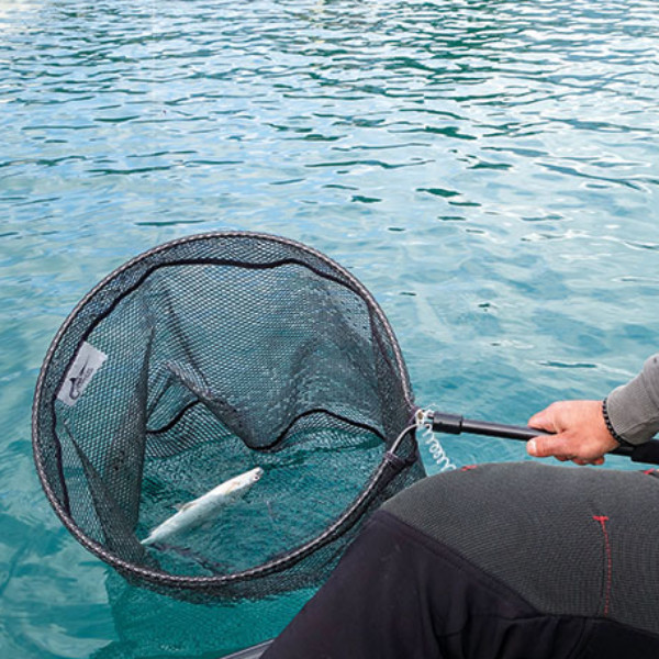 Nach der Hechtfischerei vom Morgen kramt Robin als nächstes seine Felchenrute hervor – und da passiert es: Das Kajak neigt sich zur Seite, Robins Feumer rutscht vom Kajak und versinkt sang- und klanglos im glasklaren Wasser. Weil das Missgeschick innert wenigen Sekunden passiert, bleibt Robin kaum Zeit zum Reagieren. Wir halten fest: was auf dem Kajak nicht niet- und nagelfest ist, sollte zusätzlich gesichert werden.