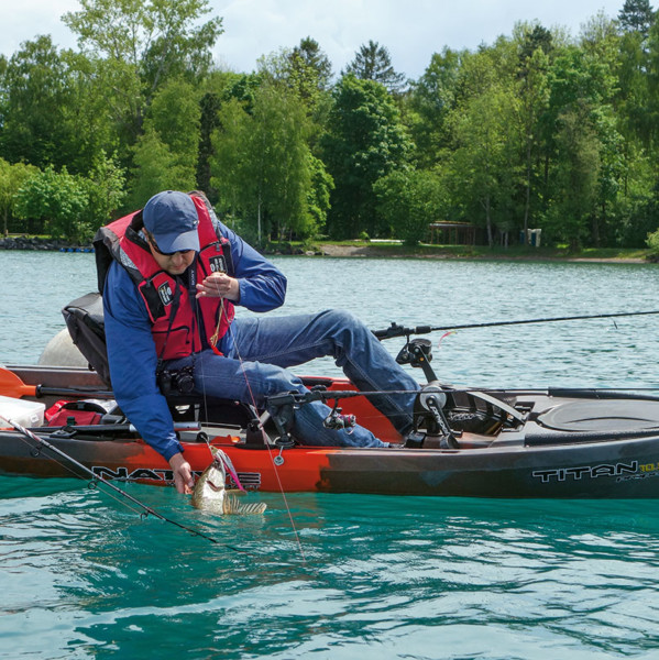 Das stehende Kajak ist, wie andere Boote auch, für die Fischerei zugelassen. Sobald man vom sich bewegenden Kajak aus fischen möchte, ist ein Schlepppatent vonnöten.