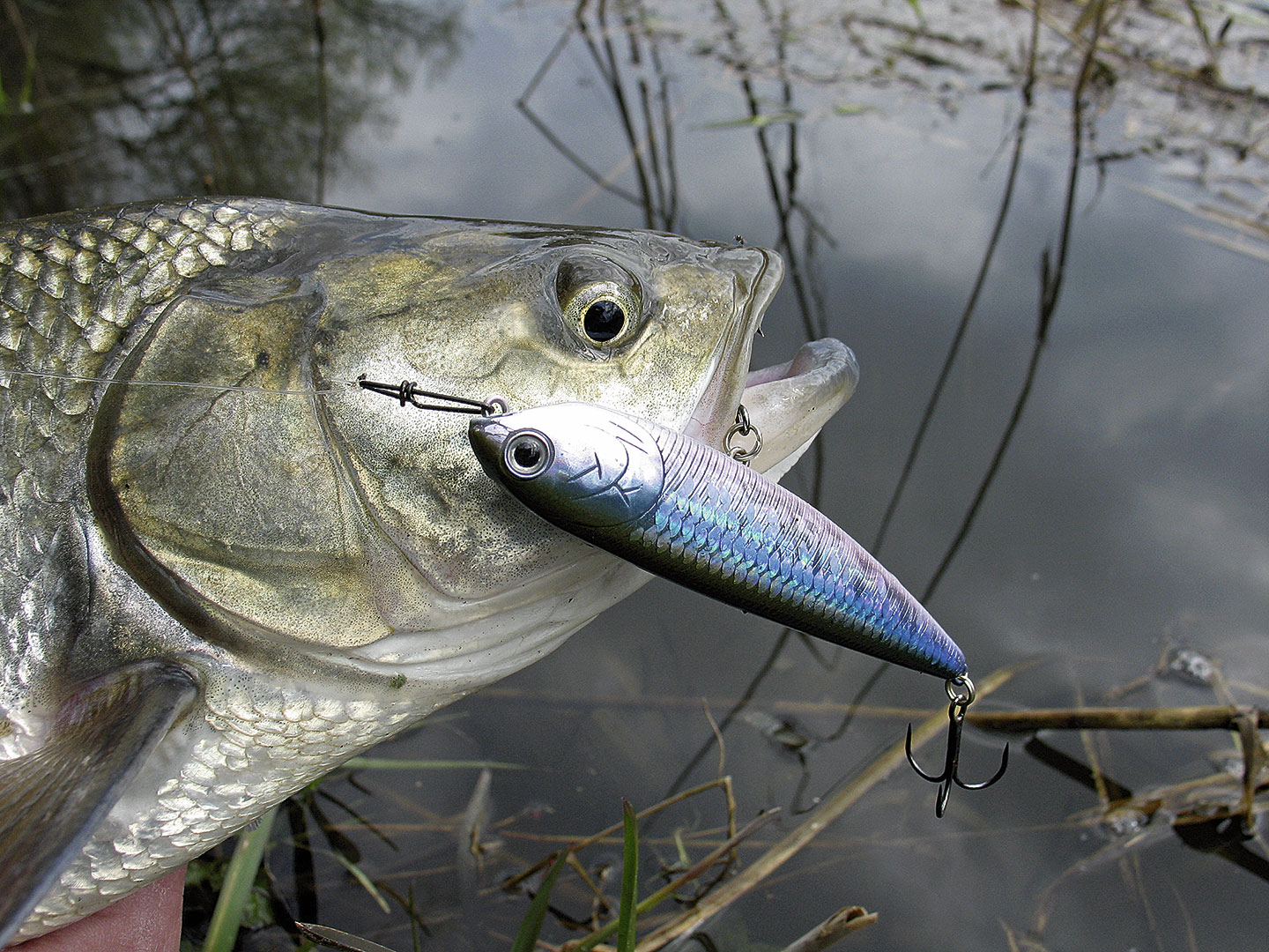 Beim Rapfenfischen ist ein weites Ausbrechen allerdings nicht erwünscht. Das Anvisieren des schnell geführten Stickbaits fällt Ihnen bedeutend einfacher, wenn der Köder weniger stark ausbricht und dafür mit relativ hoher Geschwindigkeit eingeholt wird. Die Twitches gehen also am besten in die straffe Schnur, so dass der Köder nur dezent mit seinem Körperende wackelt.