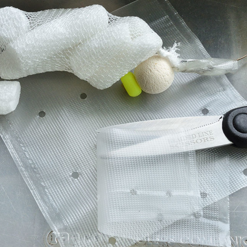 Beim Fischen in grösseren Tiefen ist es wichtig, PVA und Schaumstoff zu verwenden, die sich so langsam auflösen, dass sie sich nicht schon beim Absinken von der Montage lösen. Die Auflösezeiten variieren von Produkt zu Produkt, je nach Wassertemperatur. Sie reichen von 30 Sekunden bis zu 5 Minuten. Durch eine längere Auflösezeit kommt der Haken auch in Tiefen über fünf Meter mit Schaumstoff am Grund an und zersetzt sich nicht schon auf halbem Weg. Um die Auflösezeit zu verlängern, bietet sich der Einsatz von PVA-Beuteln statt Netz an. Dann kommt der Schaum erst nach dem Auflösen des PVAs mit Wasser in Berührung. Ein weiterer Vorteil der Beutel ist, dass Luft miteingeschlossen wird. Das erhöht den Auftrieb. Man benötigt weniger Schaumstoff, wodurch sich alles kompakter verstauen lässt. So lassen sich weitere Würfe erzielen.