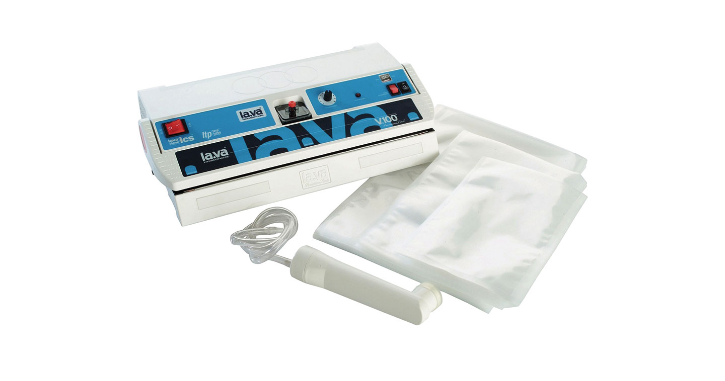 Das La.Va Vakuumiergerät Premium V.100 eignet sich für Fisch, Fleisch und weitere Lebensmittel sowie auch für Haushaltsartikel oder Wäsche. Es verfügt über ein 2-fach Schweissnaht-System mit Absaugvorrichtung und vakuumiert bis zu 1000 Beutel hintereinander ohne zu überhitzen. Das halbautomatische Profi-Gerät (Masse 410 x 230 x 98 mm) ist einfach zu bedienen und kann sowohl im Privathaushalt als auch für gewerbliche Zwecke verwendet werden. Im Preis von 359 Franken sind eine Absaugvorrichtung für Behälter, ein Starter-Set mit verschiedenen Vakuumbeuteln und eine ausführliche Bedienungsanleitung mit Garantieschein enthalten. Das vollautomatische Modell V.300 ist zum Preis von 489 Franken zu haben.