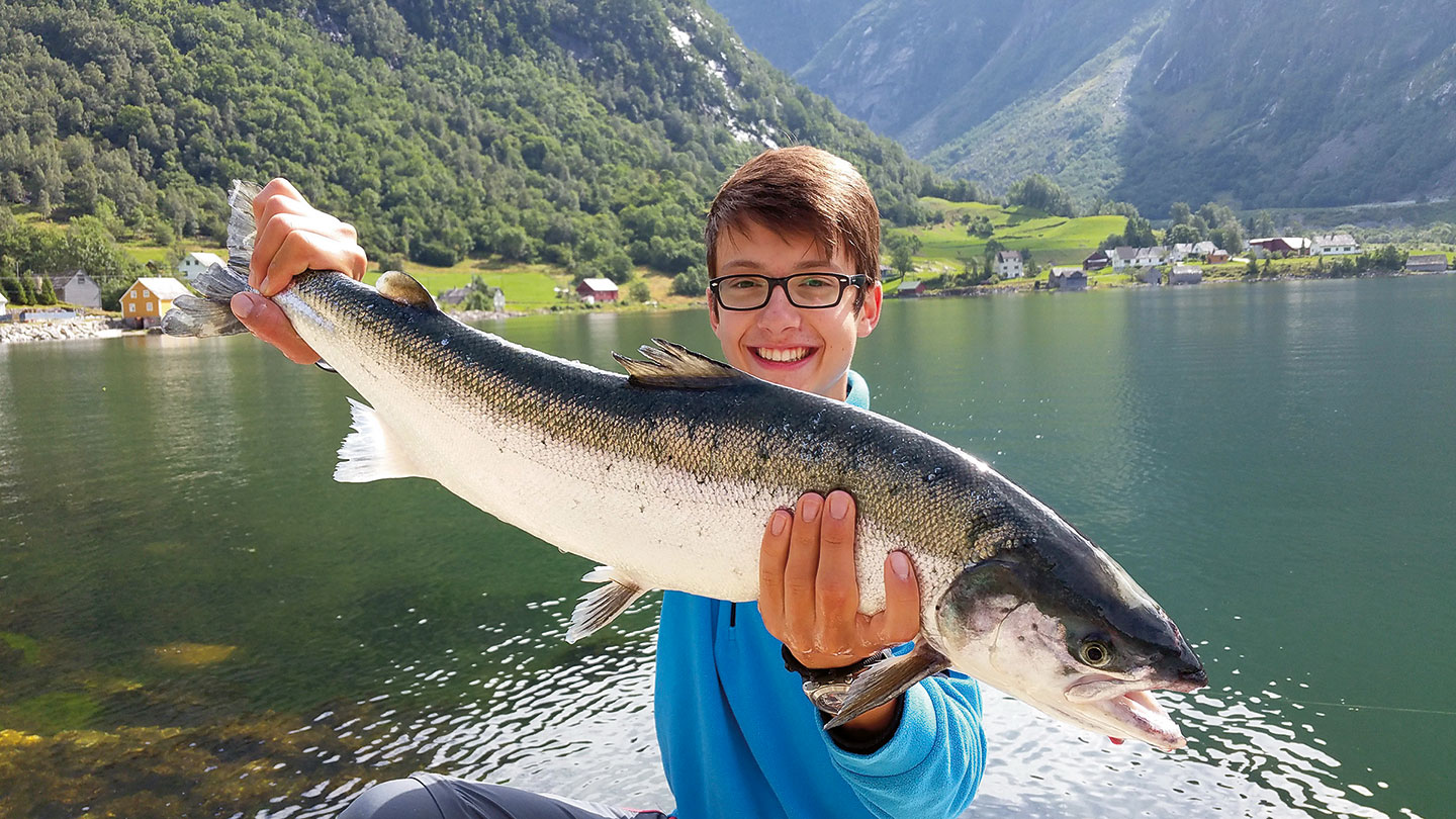 Letzter Tag: 3. August, mein Geburtstag. Ans Feiern war nicht zu denken. Innerlich schwitzte ich total und wünschte mir das, was sich alle Väter wünschen würden: Dass noch ein kleines Wunder geschieht und mein Sohn auch zu seinem Lachs kommt. «Noch zwei Stunden und dann müssen wir Richtung Flughafen», verkündete ich ganz sachlich. Die Hoffnung schwand allmählich und wir bereiteten uns emotional auf einen Nullertag vor. Während wir aber die Köder sortierten, wurde die langsam sinkende Crevette am Einzelhaken plötzlich genommen. Raffael hechtete zu seiner Rute. Sein heftiger Anhieb sprach Bände: «Du gehörst mir!» Diesmal gabs auch keine Tipps von Dad. Vaters Aufgabe war es, bei der Landung zu helfen. Die hätte er fast verpatzt, weil er versuchte, mit dem Handy diesen krönenden Abschluss festzuhalten. Ob der Lachs nun wild aufgewachsen oder entkommen und verwildert war, spielte jetzt keine Rolle. Der Fisch sprang dreimal und die Angst ihn zu verlieren, war Anspannung genug. Als Salmo salar im Trockenen war, waren wir einfach nur dankbar. Was für ein Erlebnis! Dieses Geburtstagsgeschenk, der erste Lachs meines Sohnes, wird mir immer in bester Erinnerung bleiben. «Skit fiske!», wie die Norweger sagen.