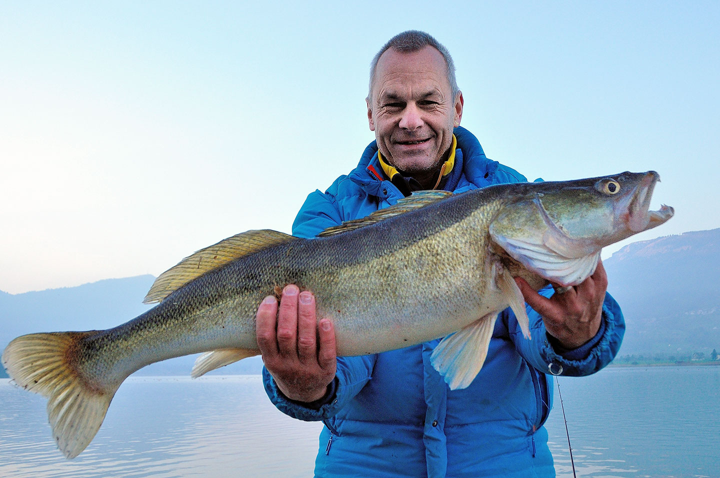 Peter Beeler aus Rickenbach schreibt: «Am 4. Dezember stellten wir bei wolkenverhangenem Himmel auf dem spiegelglatten See den Zandern nach. Geduld war gefragt, denn längere Zeit war beim Vertikalfischen kein Biss zu spüren. Kurz vor dem Eindunkeln, es war gegen viertel nach Vier Uhr, wurde unser Ausharren doch noch belohnt. Nach kurzem Drill konnte Edi Baumann den prächtigen Zander feumern. Verwendetes Gerät: Shimano Beastmaster-Rute, Shimano Exage-Rolle, 0,14er-Spiderwire Geflochtene, 0,25er-Sufix Vorfach, Gummifisch auf 14-Gramm-Jigkopf.»