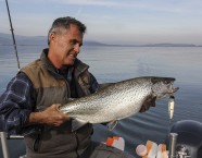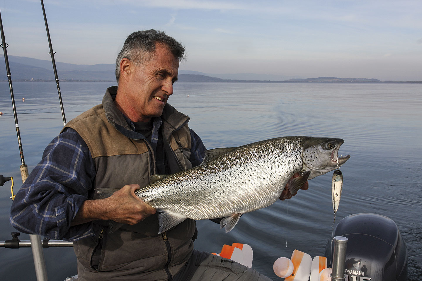 Eine garstige April-Bise wühlt den See auf. Unser Schleppboot kämpft sich, vom Autopiloten gesteuert, durch die eiskalten Wogen. Auf der Steuerbordseite bieten wir Köderfisch-Systeme an, backbordseitig kommen leichte Blechlöffel in diversen Farben zum Einsatz. Welche Köder werden wohl den Biss bringen?