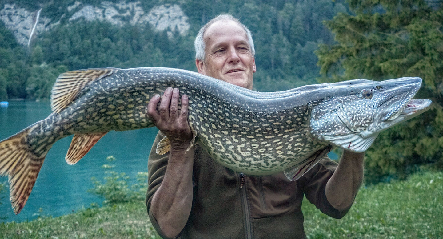 Bei leichter Bewölkung am 6. Juni fischte Stefan Gsteiger aus Lungern auf seinem Haussee. Nach einigen erfolglosen Runden ging die «Luuzi» ab und seine Rutenspitze schnellte gewaltig nach hinten. Nach einem längeren Drill konnte er die Hechtdame ins Boot heben. Verwendetes Gerät: Savage Gear Coastal-Hechtrute 3,8 m, Zander 4000-Sportrolle, Okuma UltraMax-Monofil 30 kg, Stahlvorfach, Savage Gear Slow Sink 19 cm im Forellendekor.