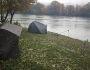 «Falls in der Nacht ein Fisch beisst, komme ich rüber und wecke dich auf!», verspricht mir Petar. «Wenn du das schaffst, gerne!» witzle ich, dann gehts schnurstracks ab in die Horizontale. Wie herrlich ist doch das Einschlafen mit dem Rauschen des Rheins und dem Trommeln der Regentropfen in den Ohren!