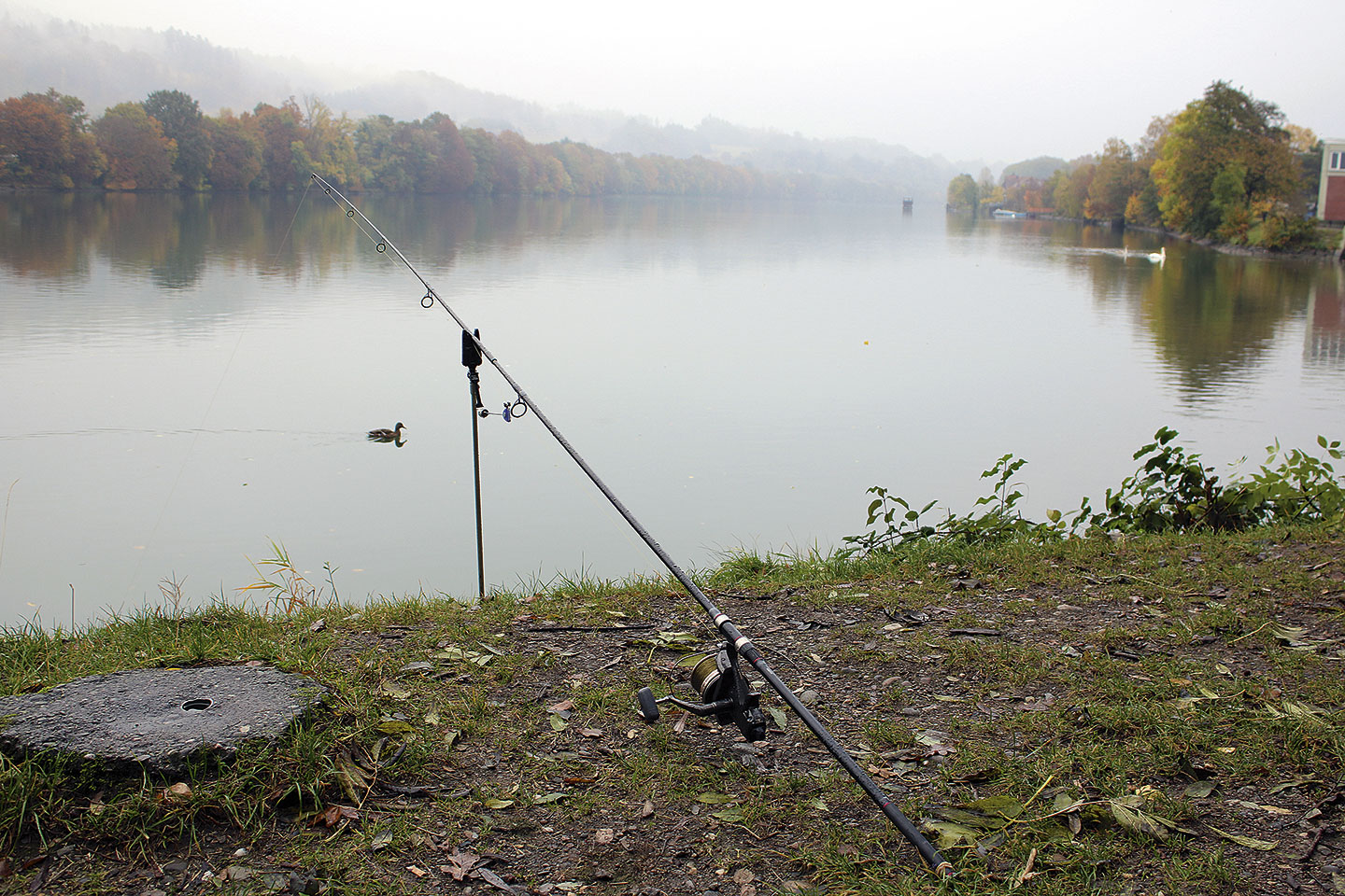 Nun aber gehts los: Petar nimmt die vorbereitete Rute und lässt den Köder nach zwei, drei Pendelbewegungen schätzungsweise sechs Meter von uns entfernt mit einem lauten «Plumps» ins Wasser klatschen. «Gleich nach einem kleinen Stück, wo es relativ seicht ist, fällt der Grund tief ab. Dort, an dieser Kante, fischen wir», begründet Petar. Nun noch die Schnur gestrafft, den Bissanzeiger eingehängt, und das wars dann auch schon mit der Action. «So, die Falle ist ausgelegt. Nun hoffen wir auf einen schönen Fisch!»