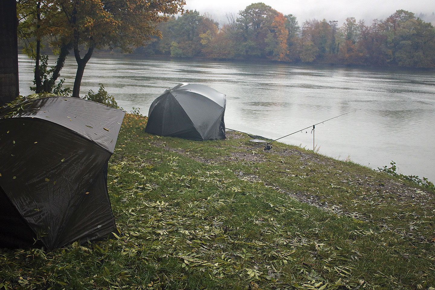 «Falls in der Nacht ein Fisch beisst, komme ich rüber und wecke dich auf!», verspricht mir Petar. «Wenn du das schaffst, gerne!» witzle ich, dann gehts schnurstracks ab in die Horizontale. Wie herrlich ist doch das Einschlafen mit dem Rauschen des Rheins und dem Trommeln der Regentropfen in den Ohren!