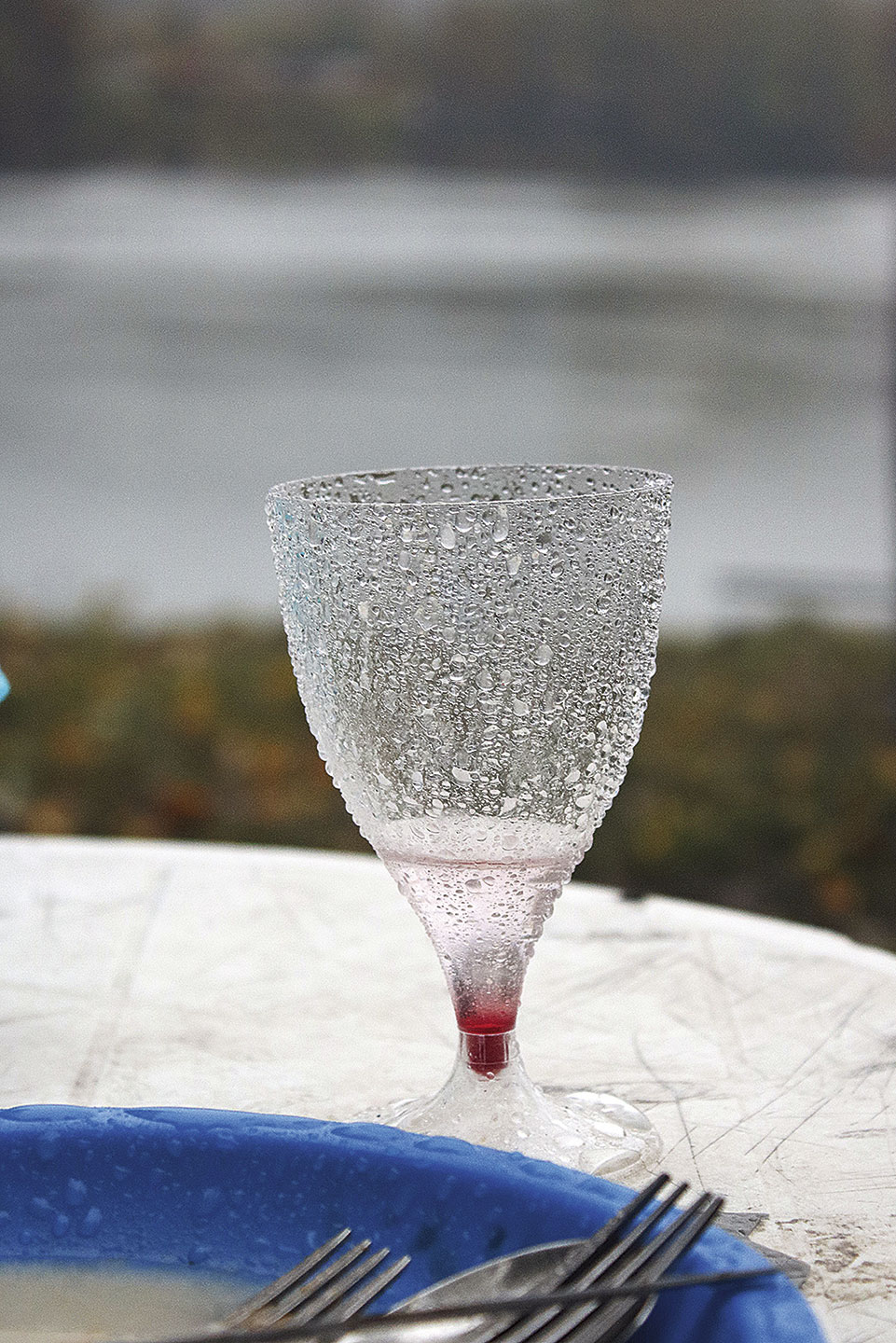 Zusammen mit einem «Tröpfchen» Primitivo geniessen wir den Znacht im Licht unserer Stirnlampen. Es beginnt wieder zu regnen.