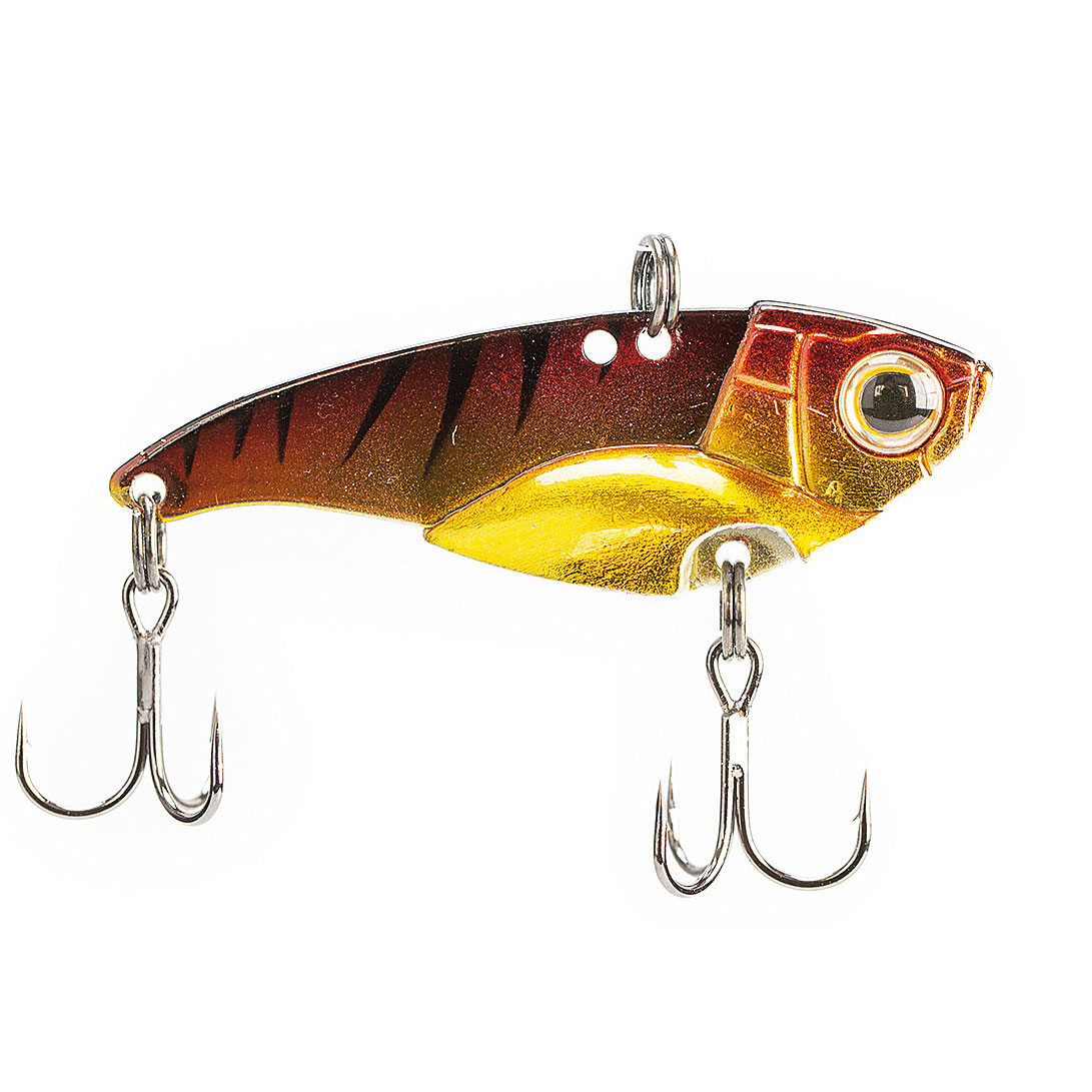 Zuerst etwas zum Begriff Zikade: Zikaden werden wegen ihrer Lauterzeugung auch Zirpen genannt und sind eigentlich an Pflanzen saugende Insekten. Die hier beschriebenen «Zikaden» haben mit ihnen aber nur gemeinsam, dass sie meistens ähnlich gross sind wie die Insekten und – vor allem – Vibrationen erzeugen. Die «Zikaden», die ich hier meine, werden aufgrund ihrer typischen Beschaffenheit auch Blattpilker genannt. Grundsätzlich ist ein Blattpilker ein ausgefrästes Stück einer Metallplatte, das die Form eines Fischchens hat, im vorderen unteren Teil beschwert ist und, im Gegensatz zu fast allen herkömmlichen Spinnködern, am Rücken und nicht an der Front mit der Schnur verbunden wird. Das verleiht ihr ein ganz eigenes Laufverhalten. Im Englischen hingegen ist mit «Cicada» unter den Ködern häufig derjenige gemeint, der tatsächlich das Insekt imitiert, bei meinem Test aber nicht berücksichtigt wurde.