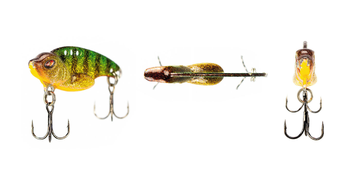 Definitiv ins Inventar der guten Egli-Köder habe ich die Zikade aufgenommen, nachdem ich meine erste Sternstunde mit ihr erleben durfte. Es ist einer jener schwierigen Tage im späten Juni, an dem über ein Dutzend Fischer am Steg sind, viele Fische zu sehen sind, aber keiner etwas Ansprechendes fängt. Bis ich es mit der Zikade versuche und als einziger ein knapp 40er-Egli fange. Die Zaungäste rundherum lassen durchblicken, dass sie diesen Köder noch nie gesehen haben. Einer gesteht, dass er zwar auch einmal so ein Ding gekauft habe, es aber bisher nur in der Köderbox hat liegen lassen. Ich vermute, dass der Fang dieses besonders schönen Egli damit zusammenhängt, dass ich mich mit dem Blattpilker vom Pulk der Mainstream-Köder abgehoben habe. Viel mehr nicht.