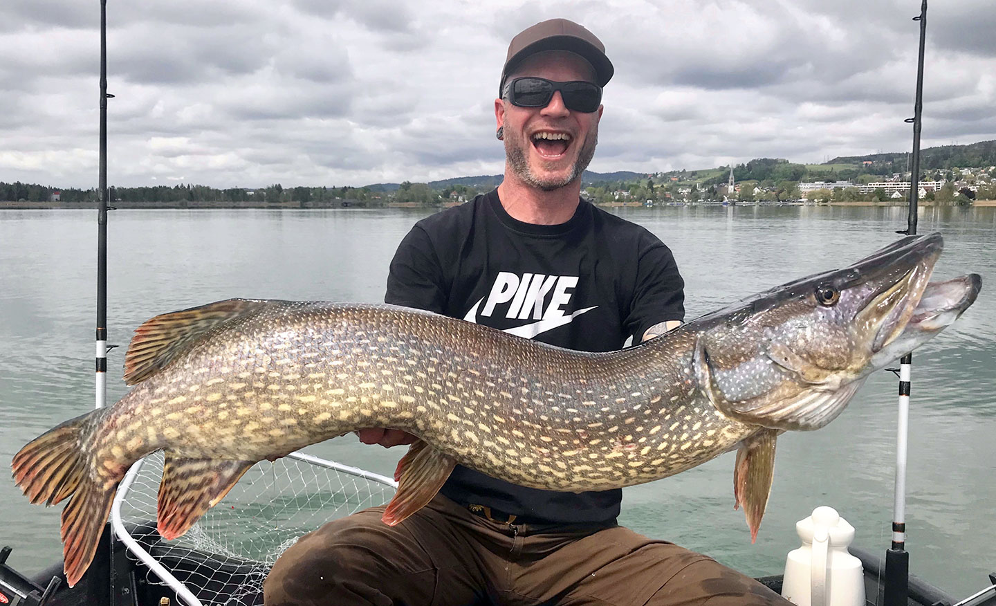 Jörn Schneider aus Dielsdorf meldet: «Es war der 1. Mai, ein Eröffnungstag, wie man ihn sich wünscht! Der Plan von Philipp Treichler und mir war: Schleppfischen mit Grossködern, von früh bis spät, mitten auf dem See. Die sechs Sideplaner, bestückt mit flachlaufenden Hardbaits, liefen perfekt, bei abwechselnder Sonne und Bewölkung und leichtem Südwestwind. Gegen 13 Uhr blieb der zweitäusserste Sideplaner der linken Seite mit einem Ruck stehen. ‹Biss›, rief Philipp und ich ergriff die Rute. Am ‹Illex Freddy› hatte sich unser bisher grösster Hecht verbissen und lieferte spektakuläre Fluchten. Mit noch zitternden Knien folgte nach der Landung ein Freudenschrei. Es ist schön, wenn ein Plan funktioniert. Verwendetes Gerät: Jack Sheldon-Rute 1,98 m, Abu Ambassadeur-Rolle, 0,40er-Monofil, 0,80er-Fluorocarbon Vorfach, Illex Freddy 210 im Hechtdekor.»