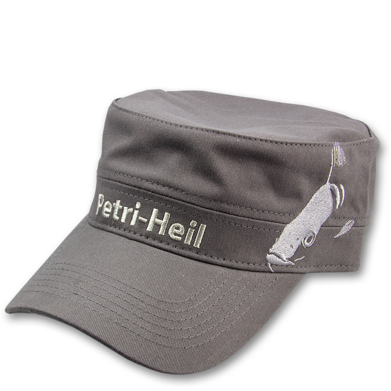 Das hochwertige «Petri-Heil»-Cap im Army-Look und mit Egli-Design schützt Dich vor greller Sonne und runden Dein Fischer-Outfit mit viel Stil und gesundem Selbstbewusstsein ab.