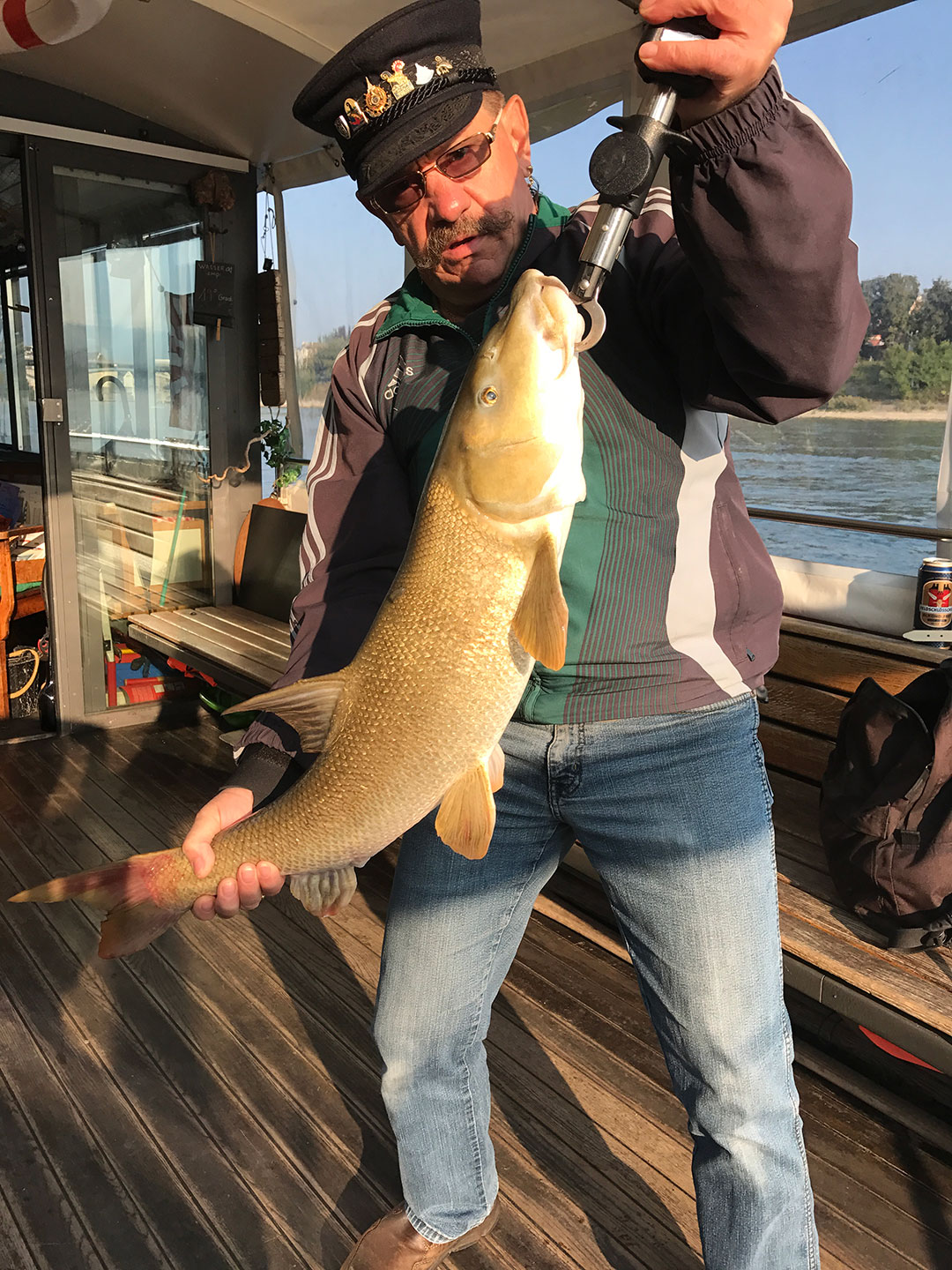Am 24. September um 9.15 Uhr fing Anton Hofer aus Basel, auch als Forellen-Toni bekannt, beim Fähri-Steg diese kapitale Barbe. Nach mehreren Fluchtversuchen in die Strömung konnte er sie mit der Gripzange landen. Verwendetes Gerät: Sportex Captain-Rute, Shimano Baitrunner8000 D-Rolle, 0,35er-Power Carbon, 0,32er-Berkley Fireline-Vorfach.
