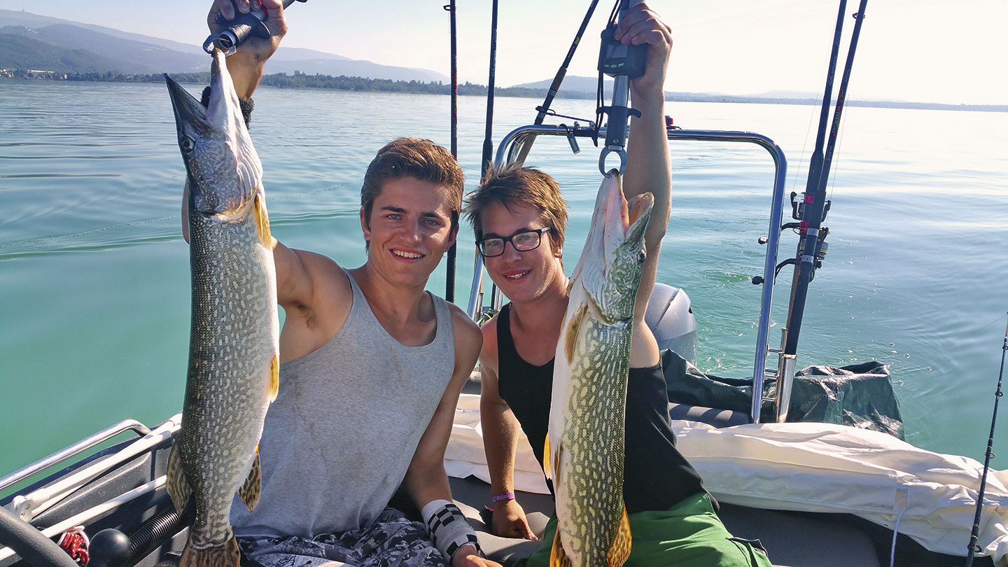 Vor gut einem Jahr trug Fabian ein T-Shirt mit der Aufschrift «Mission Meterhecht». Mittlerweile ist diese erfüllt. Sechsmal knackte das Duo dieses Jahr am Bieler- und Neuenburgersee die Metermarke. Der Grösste mass 115 cm. Ok, bei zehn Zügeln, die gleichzeitig durchs Wasser pflügen und die mit XXL-Ködern bestückt sind, sind die Chancen sicher nicht schlecht.