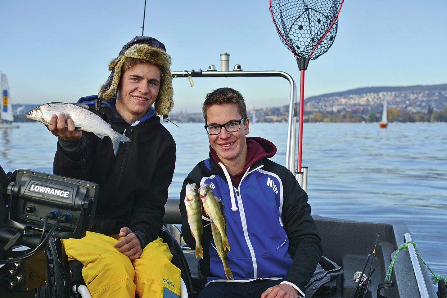 Elegant gleiten wir mit dem Pioner-Boot zum Zielort. Übrigens übt Fabian mittlerweile den Rennrollstuhlsport aus und trainiert dafür sechsmal pro Woche. Als ich erfahre, dass beide noch eine Aus- und Weiterbildung in Elektrotechnik absolvieren, frage ich sie, wo sie die Kraft und Zeit hernehmen. «Fischen ist schlecht für die Schule», meinen beide einstimmig und grinsen mich verschmitzt an.
