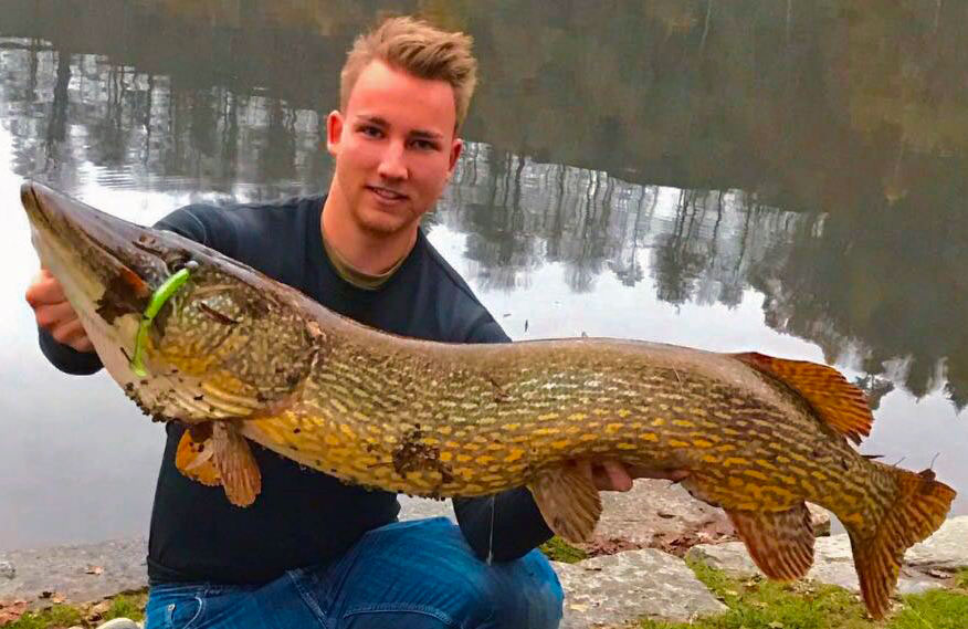 Am 27. November fuhr Marco Richert aus Luzern nach der Arbeit mit Cris an den Rotsee, um ein paar dicke Egli zu fangen. Die Beissfreude hielt sich jedoch in Grenzen und sie wechselten mehrer Male die Stelle. Um 16.30 Uhr spürte Marco einen feinen Biss, doch bald bemerkte er, dass es ein Kapitaler sein musste. Während des fünfminütigen Drills hoffte er, dass sein Fluorocarbon nicht reissen würde. Zuschauer beobachteten den spektakulären Drill und klatschten, als das Monster im Feumer lag. Schnell ein Foto, dann setzte er die Hechtdame im Sinne der Nachwuchsförderung schonend zurück. Somit gab es für beide ein Happy End. Verwendetes Gerät: Daiwa Baitcaster Ballistic-Rute 2,1 m, Daiwa Zillion-Rolle, 0,18er-Berkley Nanofil, 0,30er-Fluorocarbon Vorfach, Keitech Easy Shiner.