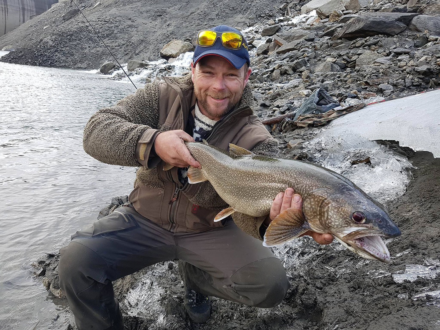 Corsin Nobili berichtet: «Am 13. Mai postierte ich mich morgens gegen fünf Uhr bei starkem Wind an meinem Hotspot. Kurz darauf traf mein Fischerfreund Nico Elmer aus Chur ein. Nach etwa einer Stunde und null Fischkontakt suchte ich einen anderen Platz auf. Nico blieb standhaft mit der Bündner-Hegene. Gegen halb acht ging es dann bei mir los. Ich konnte in knapp 20 Minuten vier Fische landen. Der grösste war etwa 46 cm lang, eine stattliche Bachforelle. Genau in diesem Augenblick kam ein Foto von Nico mit der Nachricht: ‹Judihui 74er›. Nach 30 Minuten kam ich bei Nico an, und da lag er, der kapitale Namaycush. Nicos Freude war riesig. Verwendetes Gerät: Shimano Beastmaster BX Float-Rute 3,6 m, Shimano Aernos XT Silver Edition-Rolle, 0,20er-Daiwa Schnur, 0,20er-Quantum Quattron Vorfach, Bündner Fischershop Fliegensatz (Hegene), BFS Nymphe Grösse 16 Blau/Glitzer.»