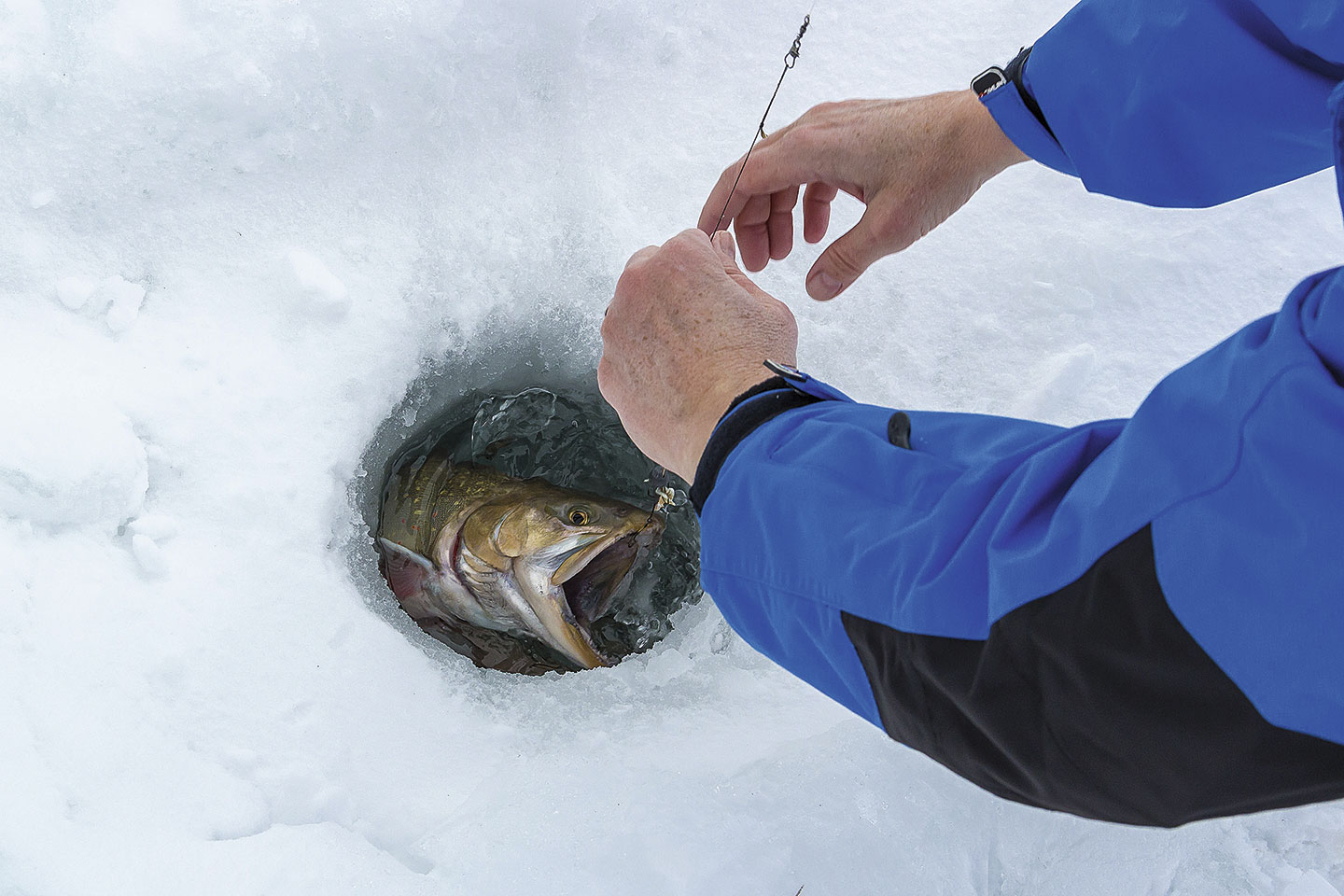 Jeder Fischer weiss: Sonnenschein und blauer Himmel führen nicht unbedingt zu guten Fängen. Umgekehrt darf auch ein mittlerer Schneesturm beim Eisfischen keinesfalls als schlechtes Zeichen gewertet werden. Dass sich die Fische von dem was oberhalb der Eisdecke vor sich geht kaum beeindrucken lassen, erfuhren die Mitarbeitenden von «Petri-Heil» auf der Melchsee-Frutt.