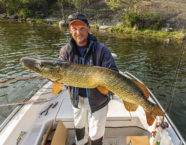 Raunen auch, als bei der Diashow die Fänge der letzten fünf Tage gezeigt wurden: Wir fingen starke Forellen bis dicht an die 4-Kilo-Marke, Hechte bis 111 Zentimeter und Lachse bis 16 Kilogramm!