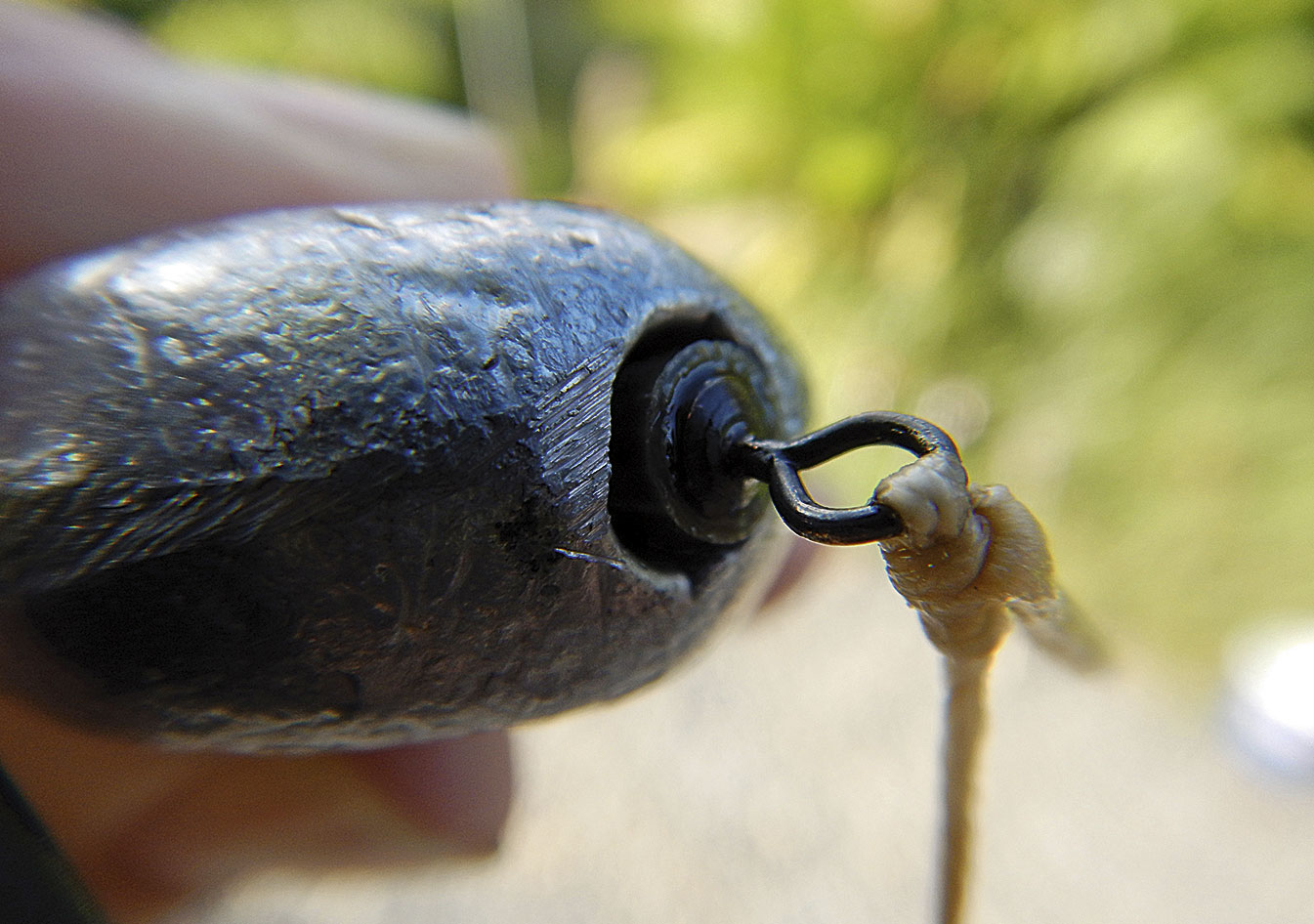 Es gibt mehrere Varianten um das Blei zu fixieren. Am einfachsten ist es, ein Wirbel-Blei zwischen zwei Stoppern oder Blei­schroten auf der Hauptschnur zu befestigen. Diese Methode funktioniert, ist aber nicht optimal, weil es recht häufig zu Verhedderungen kommt und man zudem nicht so einfach das Blei wechseln kann.