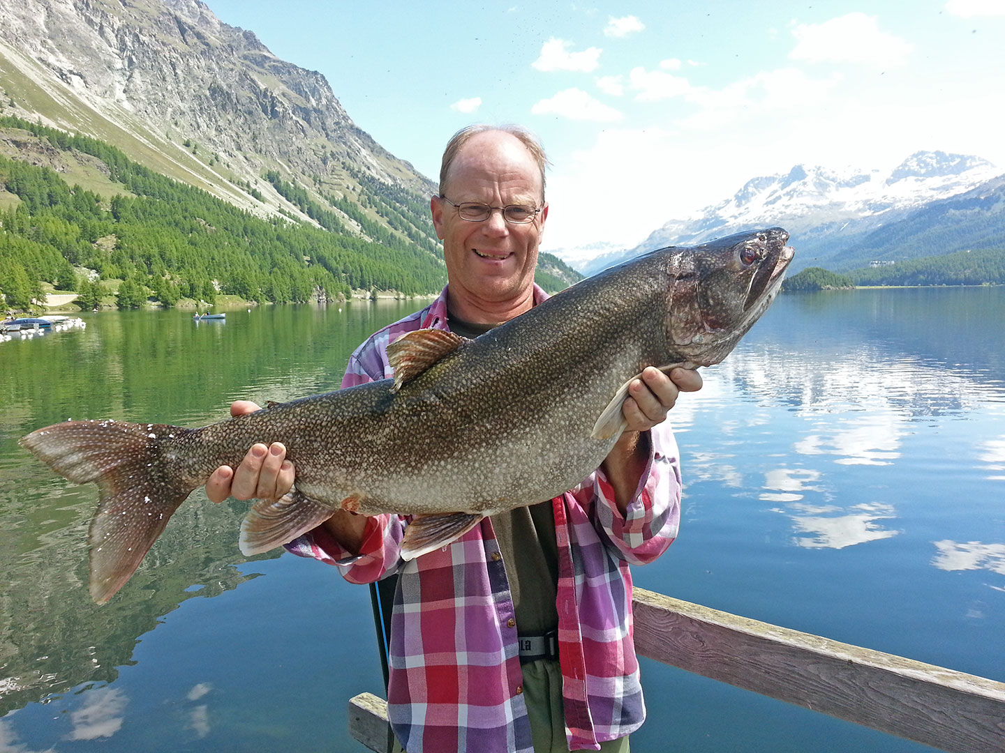 Manuel Torrents aus Volketswil verbringt seine Fischerferien seit 35 Jahren im Engadin. Am 6. Juni dieses Jahres hat er wieder einmal so richtig zugeschlagen. Beim Schleppen auf dem Silsersee mit einem Wobbler etwa 30 Meter hinter dem Ruderboot bog sich nach einer halben Stunde die kräftige Rute nach hinten. Nach einem heissen Drill konnte der Prachtsfisch gefeumert und anschliessend im Hotel Murtaröl gemessen und bestaunt werden.