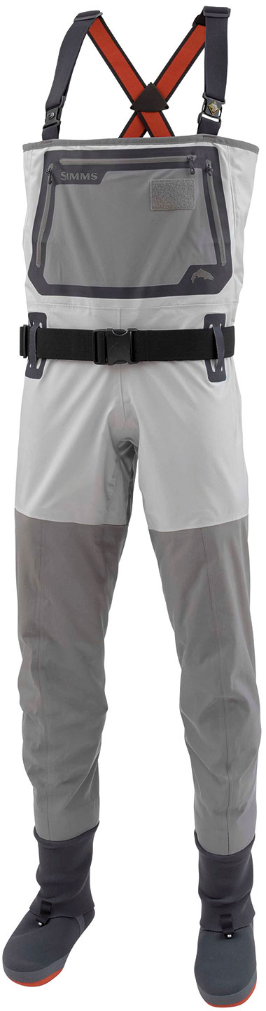 Die weitherum beliebte und bewährte Simms G3 Wathose – das Arbeitstier unter den Simms Wathosen – wurde von den Simms-Produzenten noch verbessert. Zusammen mit der Firma Gore hat Simms eine neue Membrane entwickelt. Das Resultat ist ein neuartiges, vierlagiges Laminat, welches noch robuster gegen mechanische Einwirkung geschützt ist und zusätzlich eine etwa 15 Prozent bessere Atmungsaktivität als das Vorgängermaterial aufweist. Zudem sind die Membranen und die Aussenstoffe leichter geworden und bieten so einen höheren Tragekomfort. Auch die Ausstattung lässt keine Wünsche offen: Ein breiter Watgürtel und robustere Gurtschlaufen, beidseitig mit Reissverschluss, verschliessbare Handwärmer- und Brusttasche.