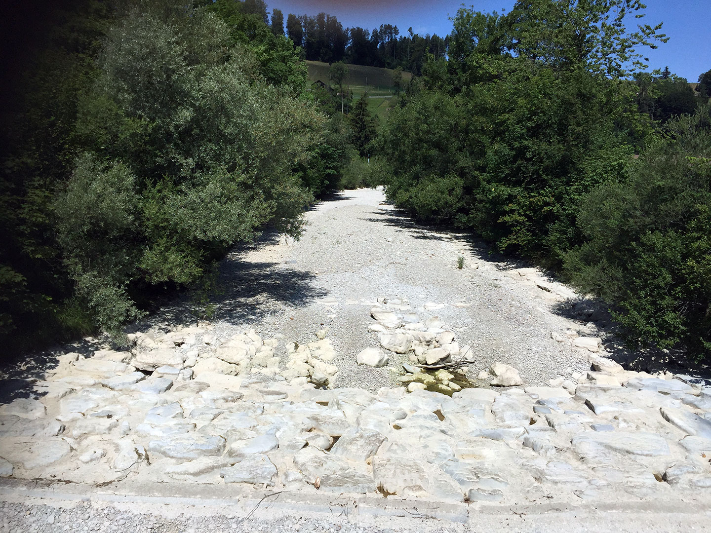 Es war verbreitet ein schöner, trockener Frühling mit einem Pollenflug, wie man ihn kaum je gesehen hatte. Und dem schönen, trockenen Frühling folgte ein ebensolcher Sommer mit wenig Niederschlag. Die Folgen der Trockenheit liessen nicht lange auf sich warten. In den Bächen wurde das Wasser schon Anfang Juni knapp. Die vereinzelten Gewitter bewirkten dann eher Sunk/Schwall-Verhältnisse, und Murgänge, welche in die Bachbetten hinunterdonnerten, trugen nichts zur Entspannung der Situation bei. Anfang Juli dann herrschte in der gesamten Nordschweiz eine trockene Biswind-Lage, welche die Gewässertemperaturen glücklicherweise (noch) nicht sprunghaft ansteigen liess, jedoch auch das Entstehen von Gewittern erschwerte. Derweil akzentuierte sich die Wasserknappheit immer mehr. Wo, wie am Oberlauf der Töss, Wasserentnahmen fürs Trinkwasser oder die Landwirtschaft vorgenommen wurden, spitzte sich die Lage noch zusätzlich zu; einige Bäche und Flüsse trockneten schon relativ früh komplett aus. Vor allem in der Zentralschweiz wie auch in der Ostschweiz lagen bald einmal viele kleinere Fliessgewässer trocken.