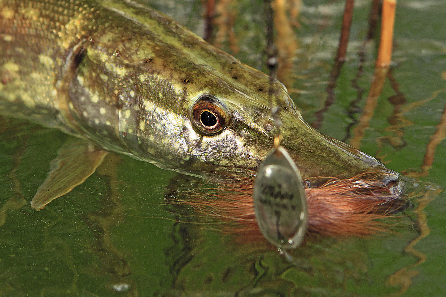 Für die US-amerikanischen Muskie-Fischer sind die haarigen, glitzernden und gefederten «Bucktail»-Spinner eine Selbstverständlichkeit. Und was bei der Jagd auf den «grossen Bruder» funktioniert, lässt sich – leicht modifiziert – auch bei unserem Hecht erfolgreich anwenden.
