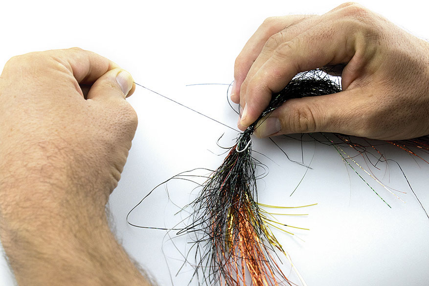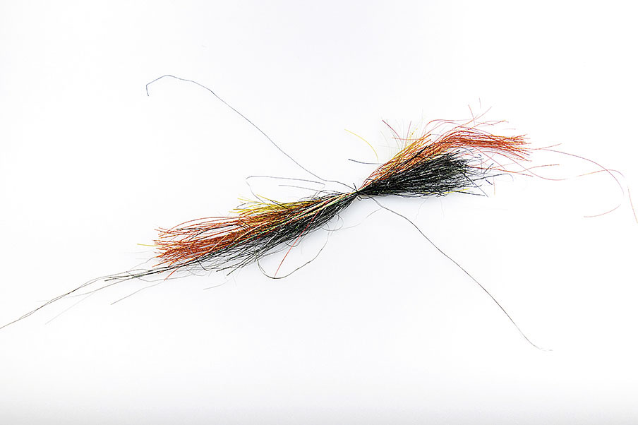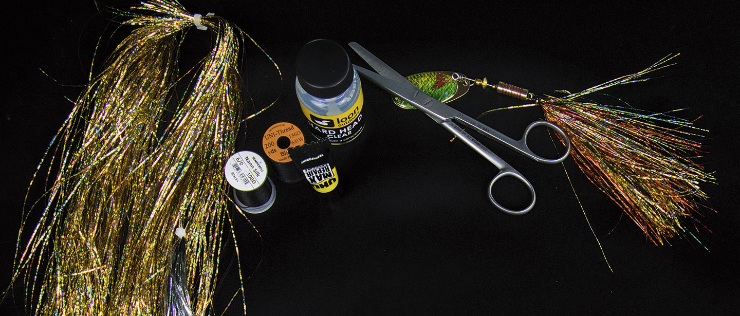 Klar kann man sich die amerikanischen «Bucktail»-Spinner online bestellen. Doch mit dem Binden eines «Bucktails» kann man den eigenen, fast vergessenen Spinnern, die in der Tiefe der Köderkiste ihr Dasein fristen, neues Leben einhauchen. Dabei kann man das Binden ganz pragmatisch angehen (siehe Anleitung). Ein Bindestock ist sicher nützlich, aber es geht auch ohne. Das Bindematerial gibts beim Fachhändler, der eine grosse Auswahl an Streamer-Material feilbietet, das sich fürs Aufmotzen unserer Köder hervorragend eignet. Um den Einstieg möglichst einfach zu gestalten und mit kleinem Aufwand, wenig Erfahrung und mässig geschickten Fingern ansprechende Resultate zu erzielen, beschränkt man sich am besten auf Lametta-artiges Dubbing, wie zum Beispiel das «Flashabou» des US-Herstellers Hareline Dubbing Inc.