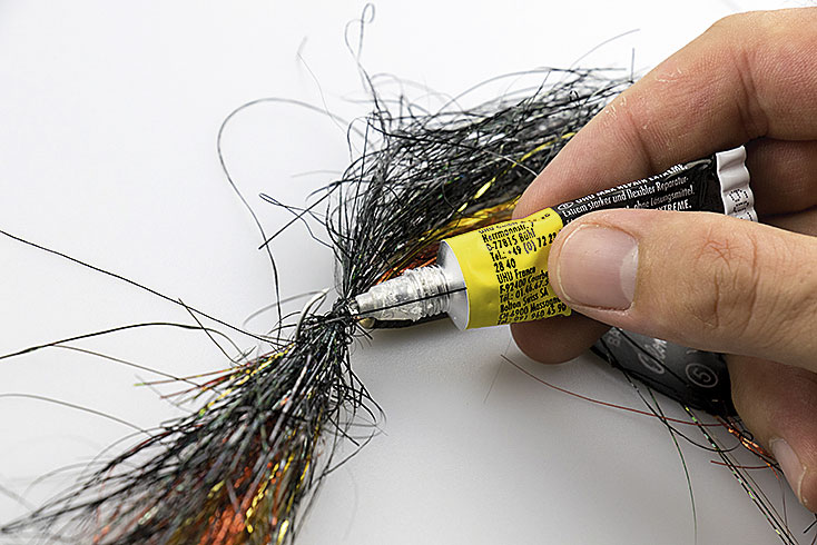 Neben der Auswahl an verschiedenem Dubbing braucht es noch Bindefaden (zur Not geht auch eine Geflochtene) und Leim, der vorzugsweise nicht sofort trocknet (optimal ist ein UV-Leim). Und schon ist man gerüstet fürs «Bucktail»-Binden!