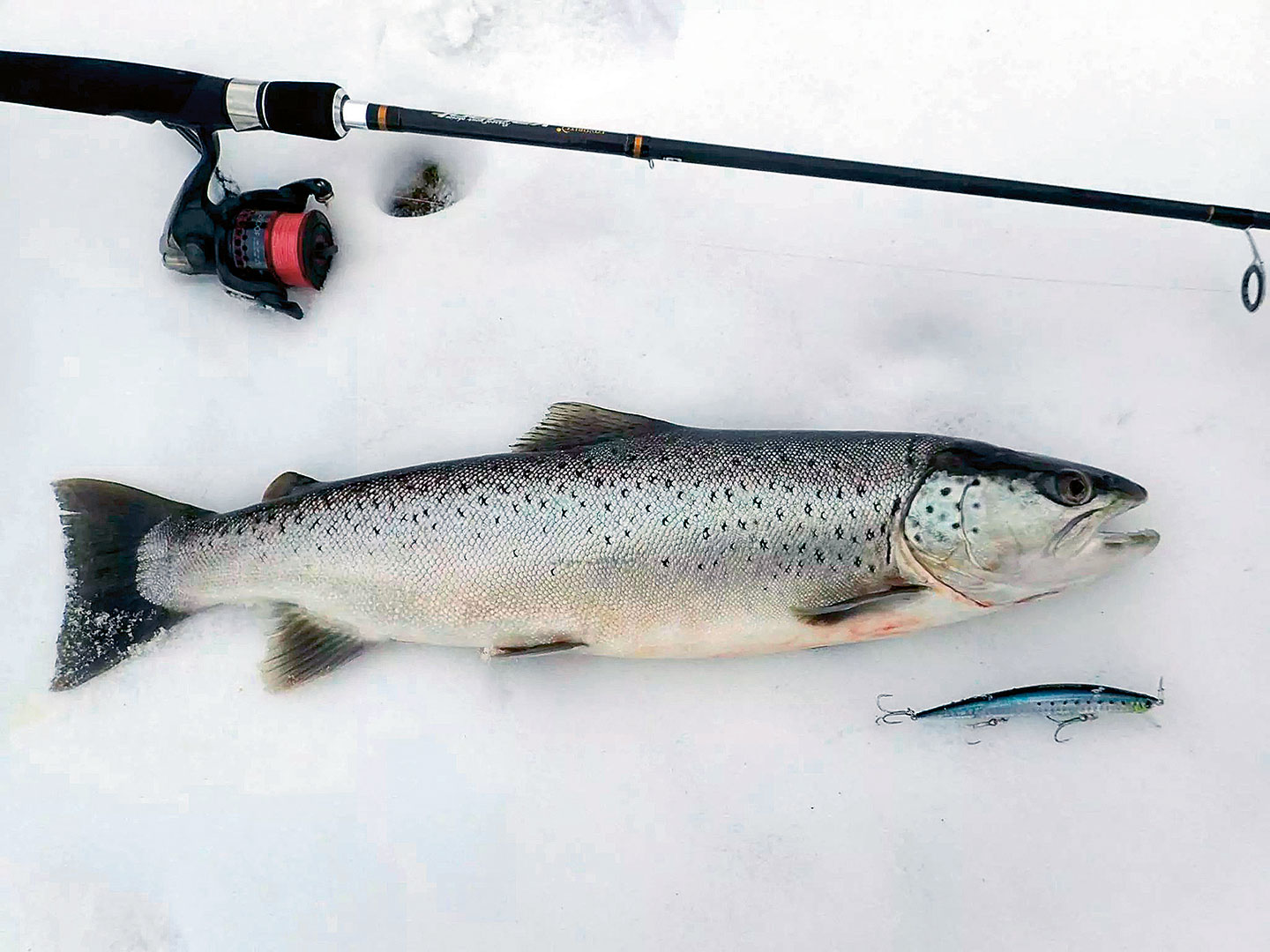 Diese Fische sind echte Kaliber und wachsen schnell, da sie vom reichen Nahrungsvorkommen in unseren tiefen Voralpenseen profitieren. Während sie im Sommer meistens in den tiefen Regionen umherziehen, kommen sie im Winter und Frühling ins kühle und sauerstoffreiche Oberflächenwasser. Dies ist unsere Gelegenheit! Oberflächennahe heisst allerdings nicht immer auch nahe am Ufer; die Seeforellen suchen ihre Nahrung oft auch weit weg vom Ufer. Folglich muss man als Uferfischer eine grosse Fläche abdecken. Dazu braucht man weite Würfe. Dafür haben sich lange und relativ straffe Ruten zwischen 2,40 und 3 Meter und einem Wurfgewicht bis 30 oder 40 g, je nach verwendeten Ködern bewährt. Die Rolle muss einiges leisten und sollte daher stabil sein. Gerade bei Temperaturen unter dem Gefrierpunkt trennt sich auch dort die Spreu vom Weizen. Es gibt nichts Mühsameres, als wenn auf einmal die Rücklaufsperre versagt oder die Bremse im entscheidenden Moment ihren Dienst nicht erfüllt. Die Schnur sollte so dünn wie möglich, aber so stark wie nötig sein, meistens passt eine Tragkraft von ungefähr 8 kg. Bei Temperaturen im positiven Bereich verwende ich gerne Geflecht. Wenn es kälter wird, ist es spätestens bei -5 Grad unumgänglich, auf eine monofile Leine zu wechseln.