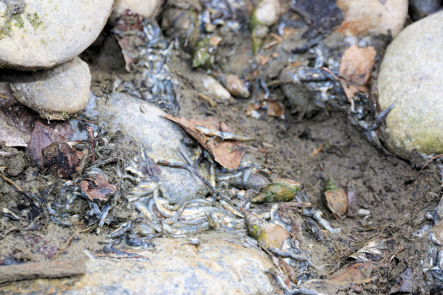 So werden die Fische über Jahre immer mehr dezimiert, bis sie schliesslich ganz verschwinden. Aktuell befindet sich der gesamte Alpenrhein im Endstadium dieser Entwicklung. Einige Fischarten, wie etwa die Nase, sind dort deswegen schon vor Jahren ausgestorben. Weitere Arten sind stark bedroht. Fische, die im Winter nicht entkräftet zu Grunde gegangen sind, werden im Frühling nicht etwa von einem reichen Nahrungsangebot empfangen, sondern finden nur eine verschlammte und verdichtete Flusssohle ohne jegliches Leben vor. So haben sie weiterhin mit dem künstlichen Sunk und Schwall zu kämpfen und müssen in die jährlich wiederkehrenden Extremhochwasser der Schneeschmelze starten.