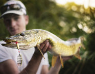 Am nächsten Tag ging ich Hechtangeln und montierte Köder bis 40 Gramm, die ich mit der Rute, welche Stucki mit einem Wurfgewicht von sieben bis 28 Gramm ausgelegt hat, problemlos werfen konnte. Nach meinen Erfahrungen sollte man jedoch nicht mehr als 50 Gramm mit dieser Rute werfen. Nach einigen Würfen spürte ich einen Biss bis ins Handteil, welchen ich mit einem Anschlag begrüsste. Der Fisch floh ins Unterholz, jedoch konnte ich ihn dank des starken Rückgrats daran hindern, tiefer in die Äste zu schwimmen. Der Kampf mit einem 70 Zentimeter langen Hecht war ein intensives Erlebnis, und spätestens jetzt konnte ich mich vollends mit dieser Rute mit hochstehender Performance anfreunden.
