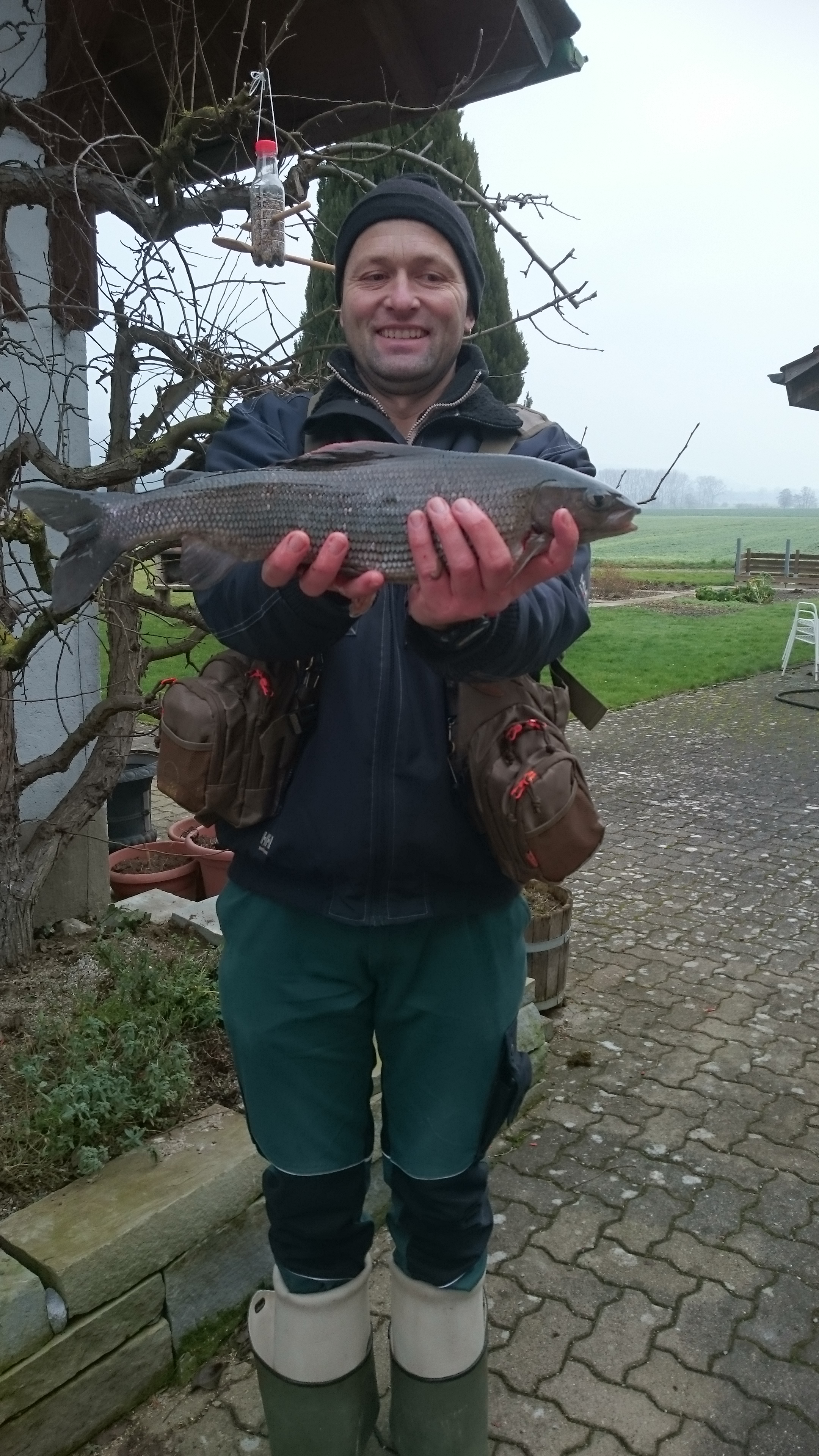 Ueli Schneider aus Altikon berichtet: «Nach langer Hochwasserperiode konnte ich am 14. Januar endlich wieder einmal auf Äschenpirsch gehen. Wie immer nach einem Hochwasser, musste ich die Standplätze zuerst suchen. Gegen elf Uhr konnte ich eine 44er feumern. Der nächste Biss um halb zwölf war heftig, sodass ich mit einer Barbe rechnete. Nach kurzem Drill lag diese 49er im Feumer. Verwendetes Gerät: Shimano Vengeance Float-Rute 3,6 m, Speedy-Wenderolle, 0,18er-Stroft GTM Monofil, roter Haken Nr. 6.»