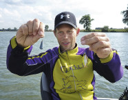 Richtig interessant wird es, wenn man vom Boot aus mit den Swimbaits fischt. Wenn der Wind stark bläst und das Boot nicht mehr an einer Stelle gehalten werden kann, schlägt die Stunde der Swimbait-Seitenarmmontage. Hierzu benutzt man am besten eine relativ weiche Rute um die 25 Gramm Wurfgewicht und ein dafür überdimensioniertes Birnenblei von 60 bis 80 Gramm. Der Seitenarm, an dem das Blei hängt, sollte etwa 70 Zentimeter lang sein und der Köderarm eine Länge von um die 150 Zentimeter haben. Führt man diese Montage nun recht schräg weit hinter dem Boot, wühlt das Blei über weite Strecken recht auffällig das Sediment auf. Der Swimbait läuft dahinter verführerisch durch die Staubwolke. Dadurch, dass das Blei immer wieder kurz auf dem Grund stockt, biegt sich die eigentlich zu weiche Rute ziemlich durch. Sobald sich das Blei wieder löst, federt diese zurück nach vorne und beschleunigt so – ohne auch nur irgendein Zutun von uns – in unregelmässiger Folge unseren Swimbait am anderen Ende der Schnur.