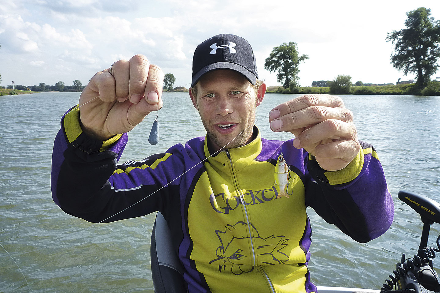 Eine tolle Variante ist es, einen Bodentaster – wie er zum Forellenfischen benutzt wird – vor den Swimbait zu montieren. Dieser lässt sich super werfen und verheddert sich nicht schon im Flug. Dabei führe ich den Köder ein wenig wie beim Jiggen eines Gummifischs, halte die Rute auf etwa «10 Uhr» schräg nach oben und drehe nur mit der Rolle langsam den Köder ein. Zwischendurch mache ich immer wieder Pausen, um den Köder zurück zum Grund taumeln zu lassen. Kommt der Bodentaster wieder auf dem Grund auf, spüre ich dies in der Rute und drehe sofort weiter. Durch die längliche Form des Bodentasters ist die Hängergefahr gering. Diese Methode ist besonders in Flüssen der Hit. Durch die Strömung reicht es, den Bodentaster nur auf Spannung zu halten. Der Swimbait arbeitet praktisch von alleine. Ein schöner Nebeneffekt ist es, dass die Strömung den Köder dahin drückt, wo auch die Fische auf Nahrungssuche gehen.