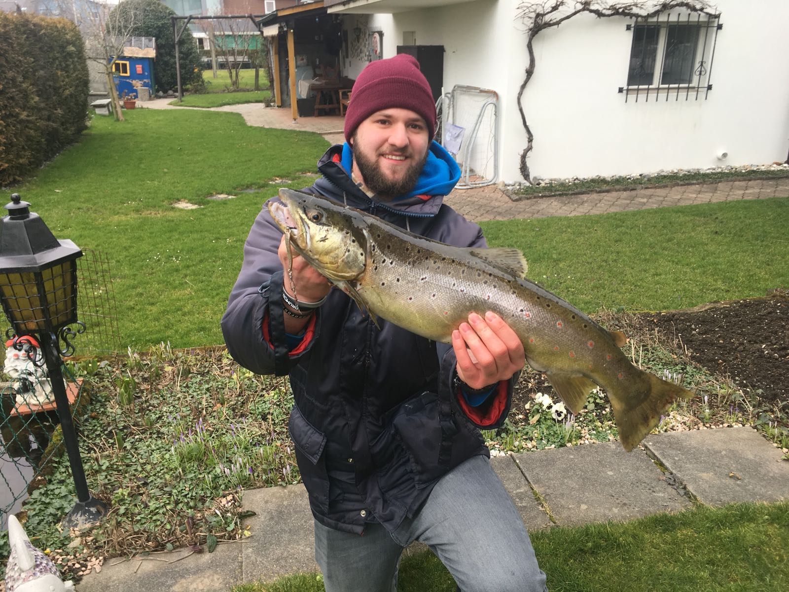 Nicola Stiz aus Stans meldet: «Am 6. Februar hatten wir knapp ein Dutzend Egli im Bootskasten und wollten den Fischermorgen beenden. Während Grossvater Aldo mit dem Abdecken des Bootes beschäftigt war, wollte ich mein Fischerglück noch kurz bei meiner Lieblingsstelle am Ufer auf Forellen versuchen. Breits beim zweiten Wurf mit meinem neu erworbenen Mozzi-Löffel kam der Hammer Biss und meine Bremse sang mein Lieblingsglied. Nach einigen Minuten Drill konnte ich meine bisher grösste Forelle landen. Petri Dank dafür! Verwendetes Gerät: Daiwa Crossfire-Rute 1,8 m, Abu Garcia Black Max Spinning-Rolle, Abu Garcia Geflochtene, Mozzi-Löffel Nr. 2 in Kupfer/Silber.»