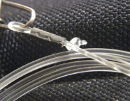 Statt eines Knotens nach der Crimphülse kann man das Ende auch mit einem Feuerzeug zu einem Kügelchen schmelzen und es vor dem Crimpen an die Hülse heranziehen. Sieht etwas sauberer aus als ein grober Knoten und hält genau so gut.